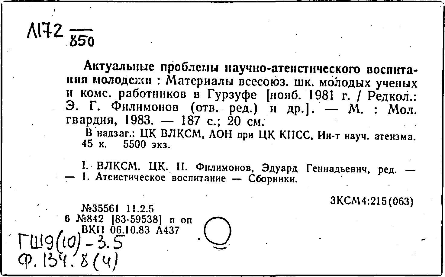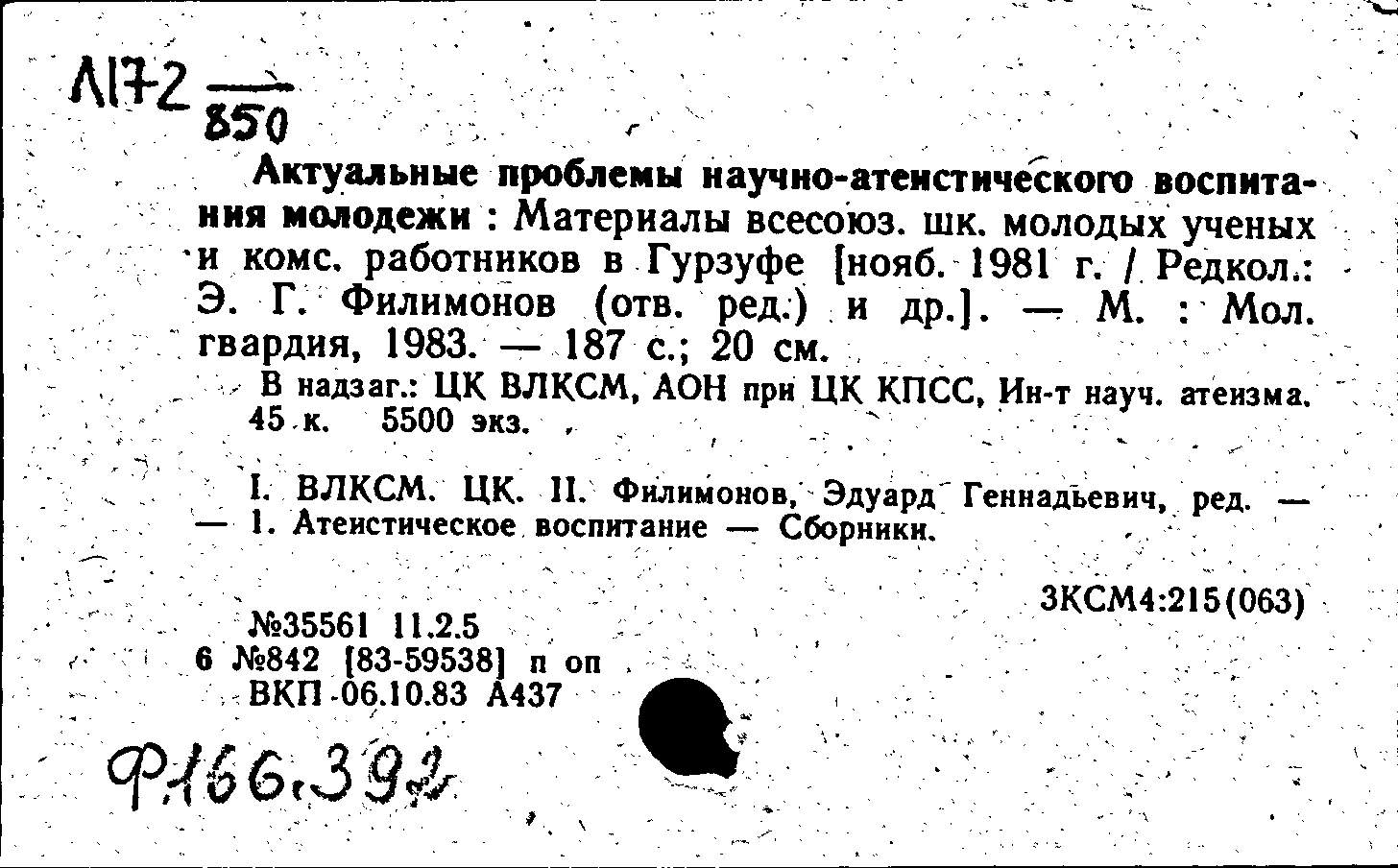 В надзаг.: ЦК ВЛКСМ, АОН при ЦК КПСС, Ин-т науч. атеизма