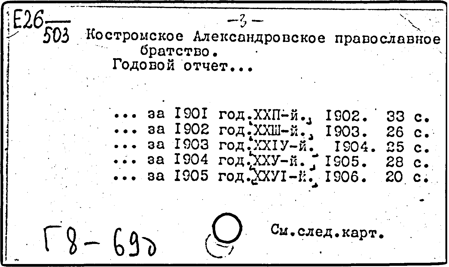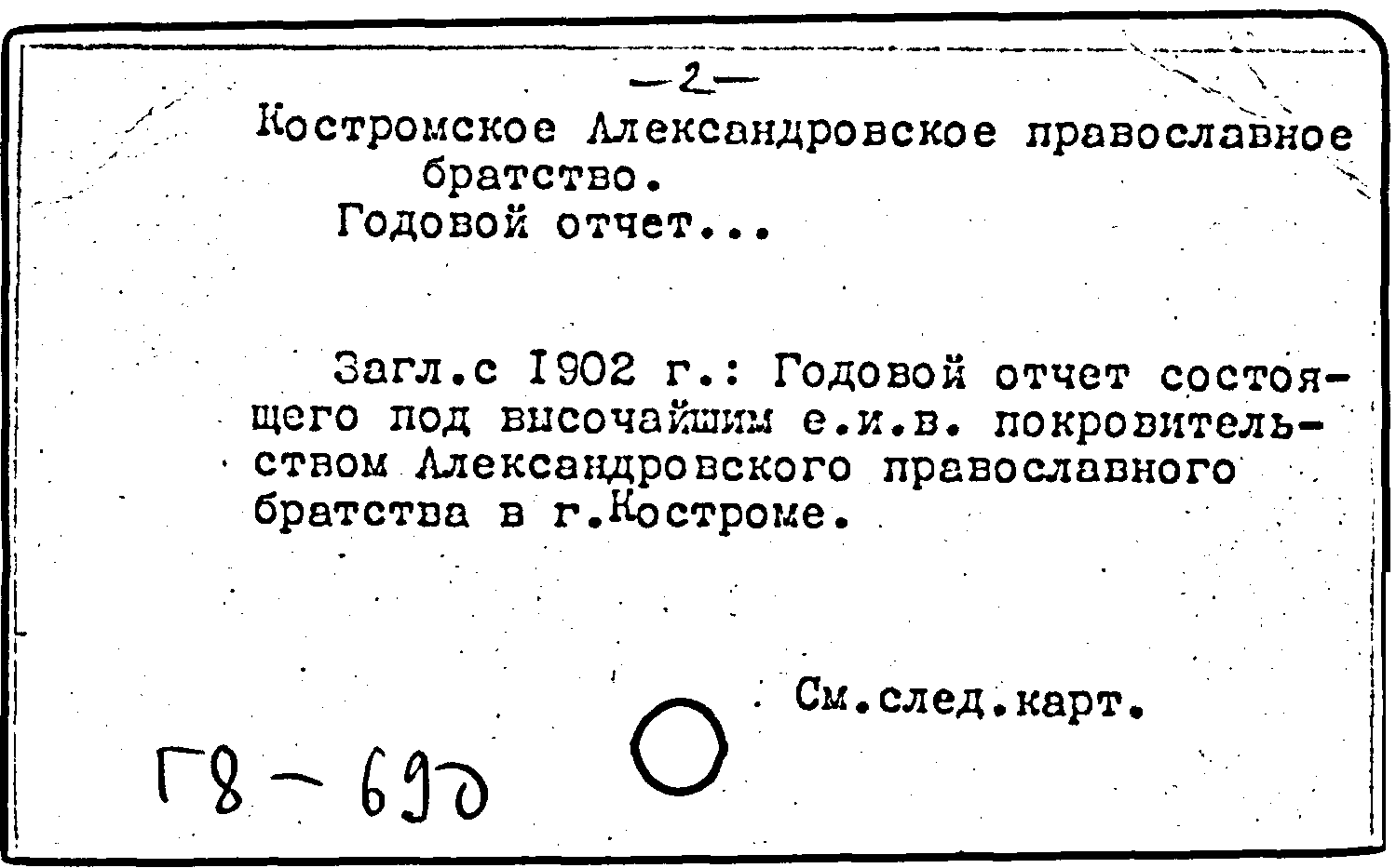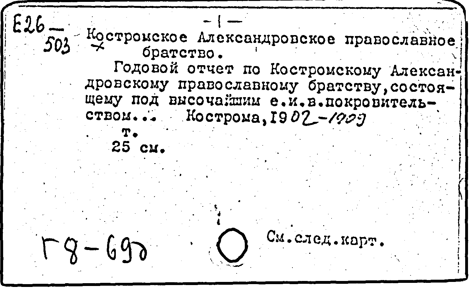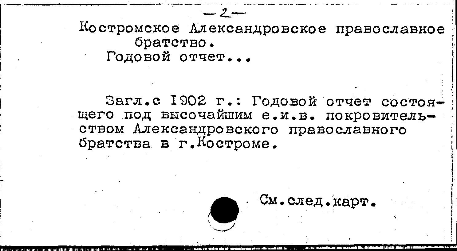 Загл. с 1902 г.: Годовой отчет состоящего под высочайшим его императорского величества покровительством Александровского православного братства в г. Костроме