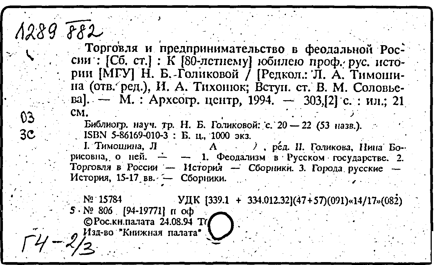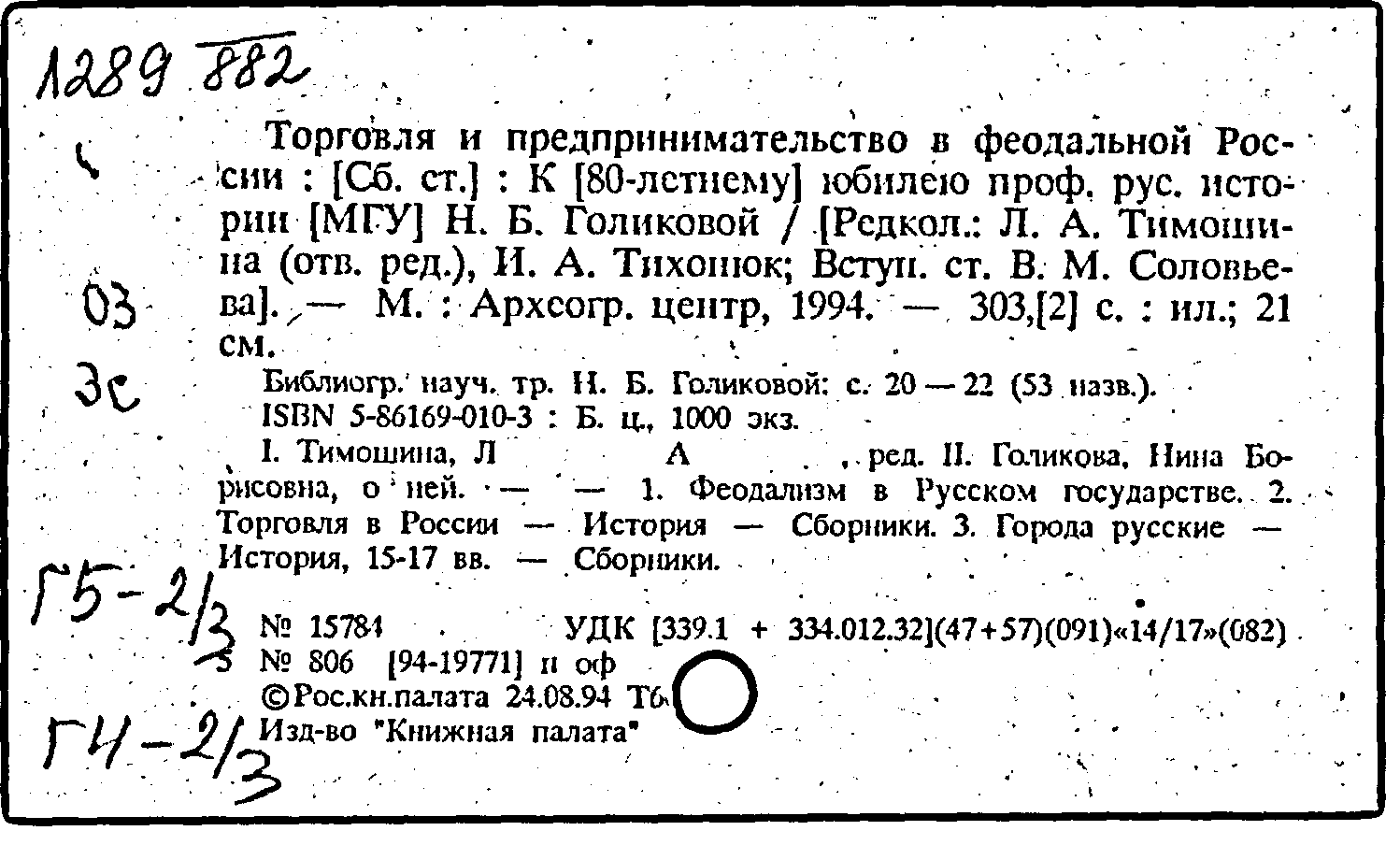 Книга: Торговля и предпринимательство в феодальной России: [сборник статей]: к [80-летнему] юбилею профессора русской истории [МГУ] Н.Б. Голиковой