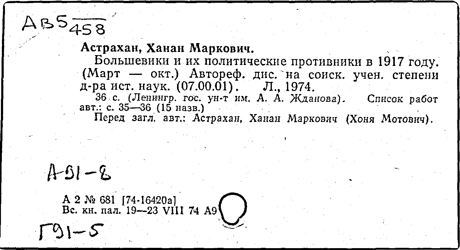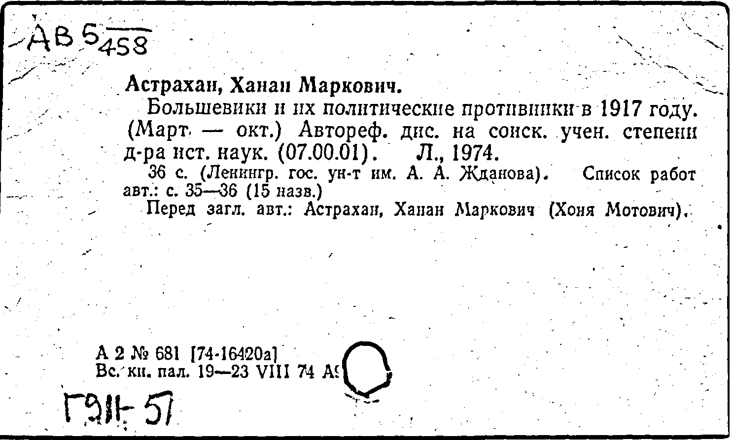 Фонд: КХ, Шифр: Ав 5/458, Инв.№: 0046664
