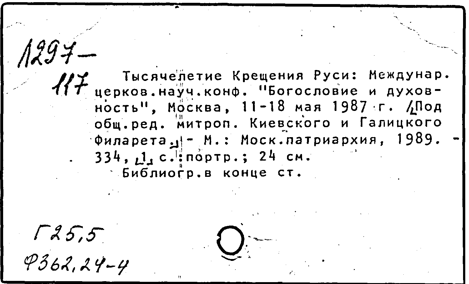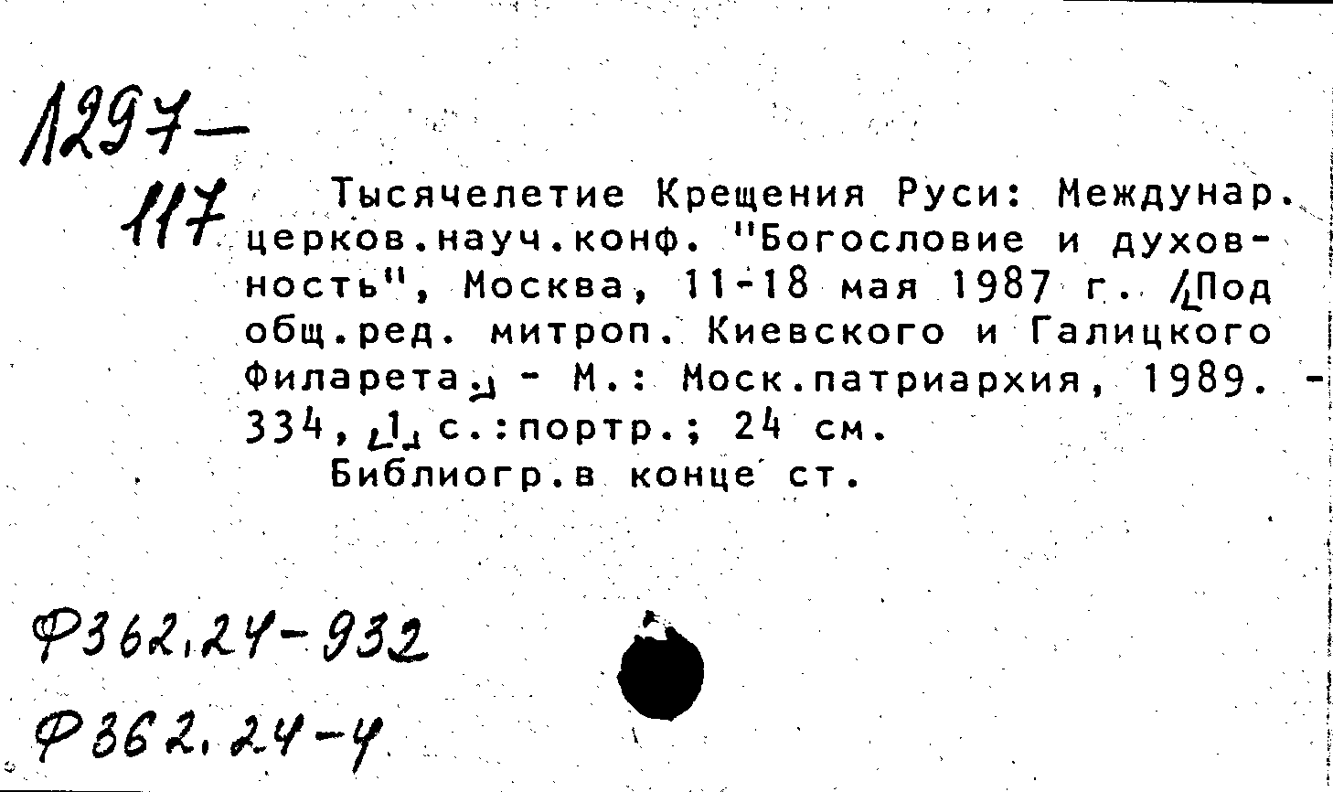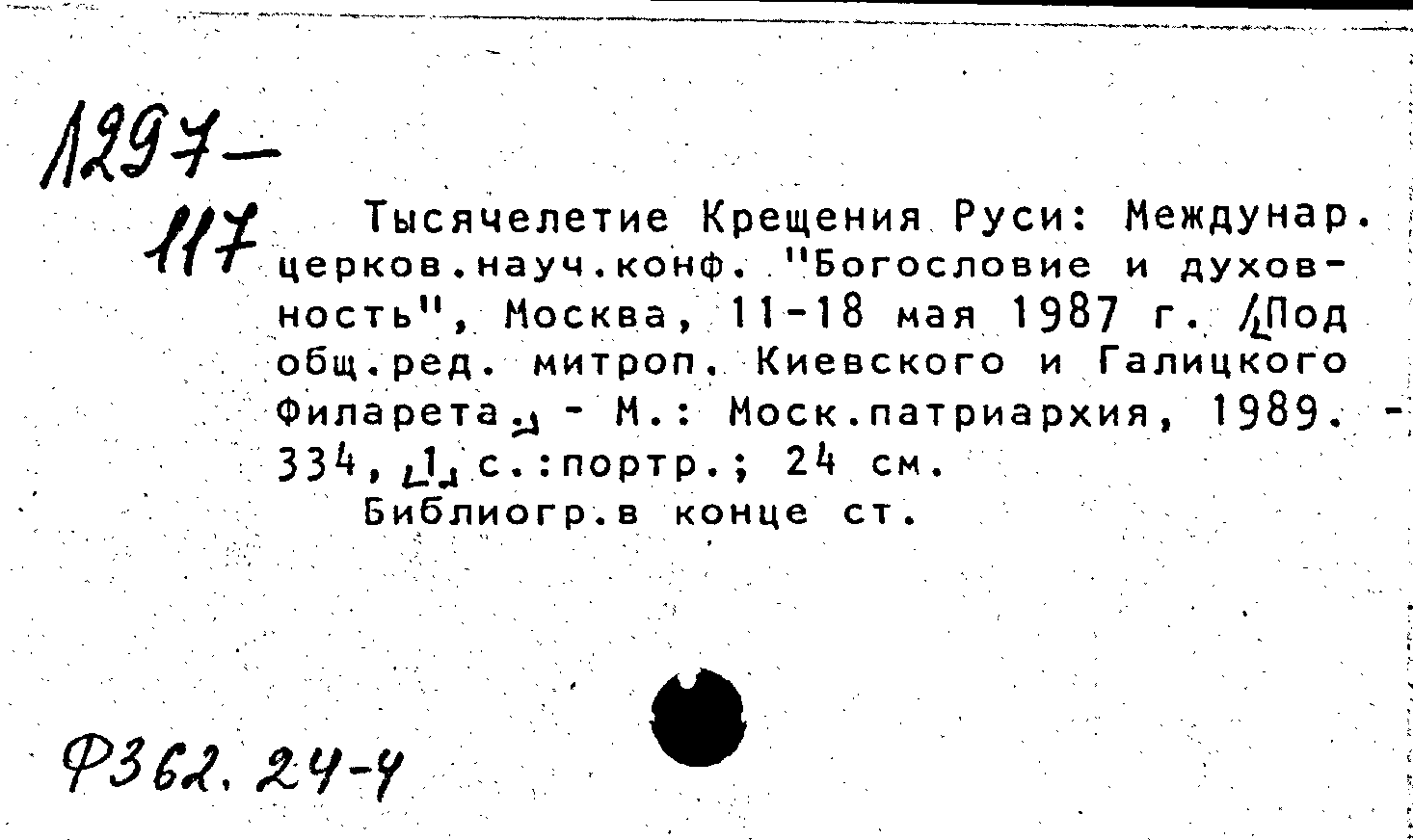 Тысячелетие крещения Руси: международная церковная научная конференция "Богословие и духовность", Москва, 11-18 мая 1987 года