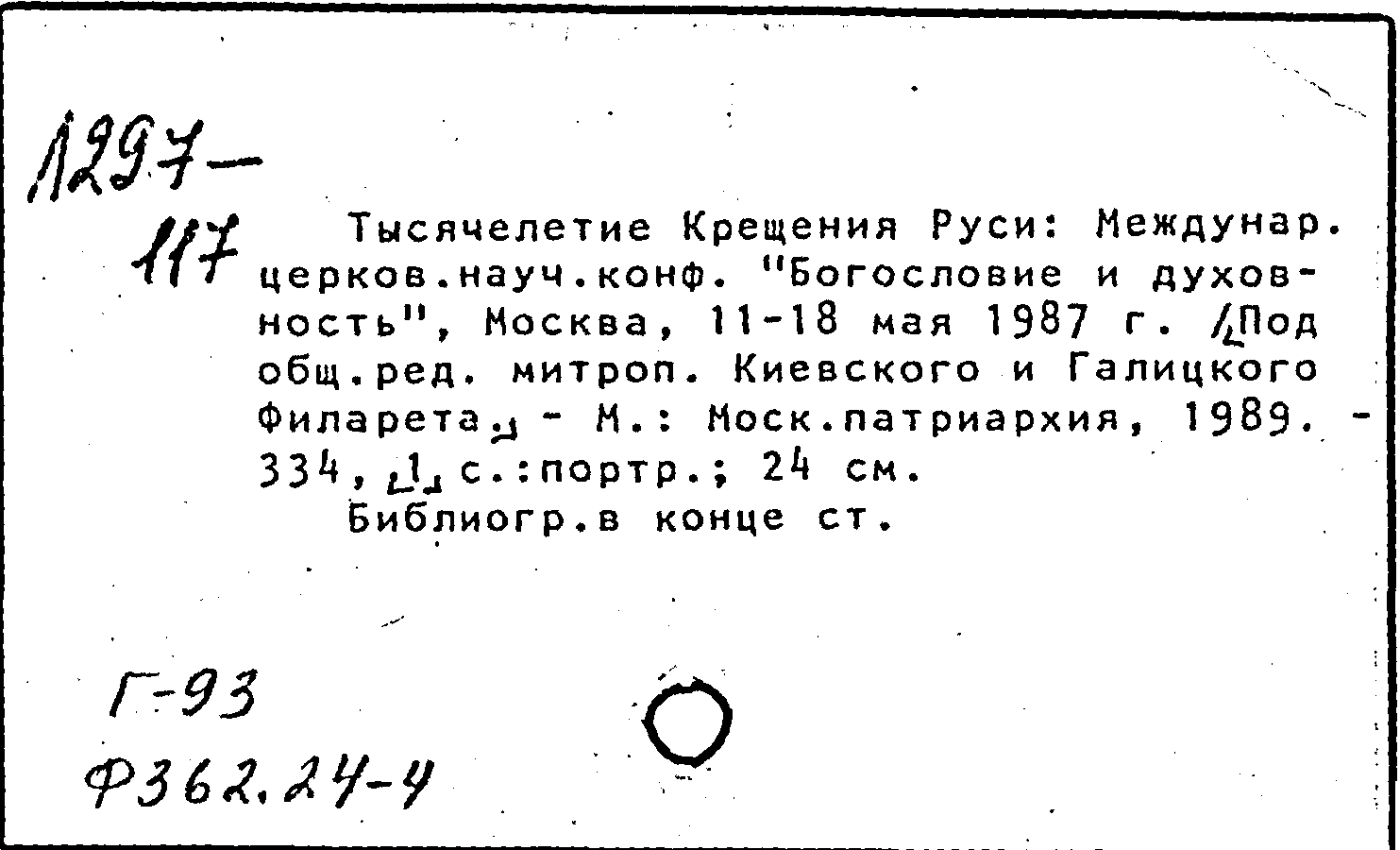 Книга: Тысячелетие крещения Руси: международная церковная научная конференция "Богословие и духовность", Москва, 11-18 мая 1987 года