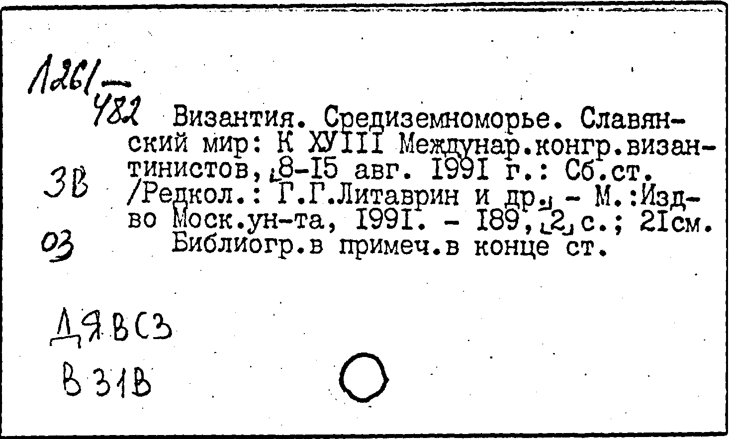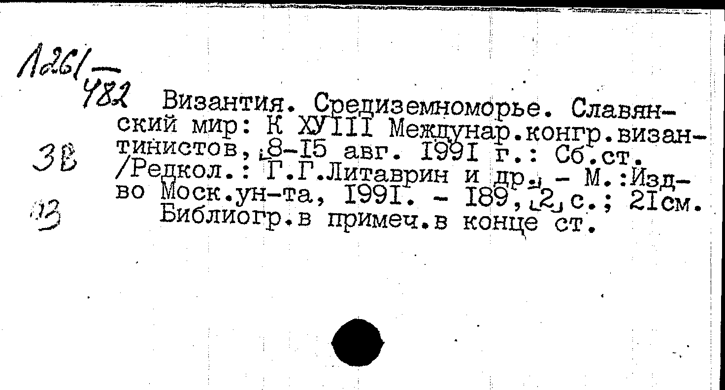 Византия. Средиземноморье. Славянский мир: к XVIII Международному конгрессу византинистов, 8-15 августа 1991 г.: сборник статей