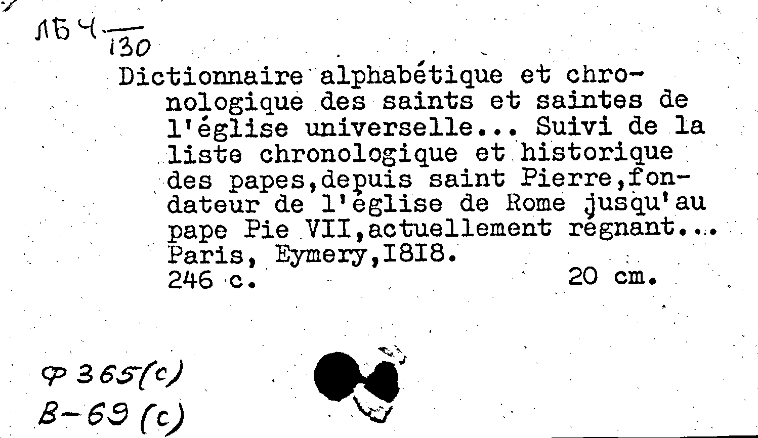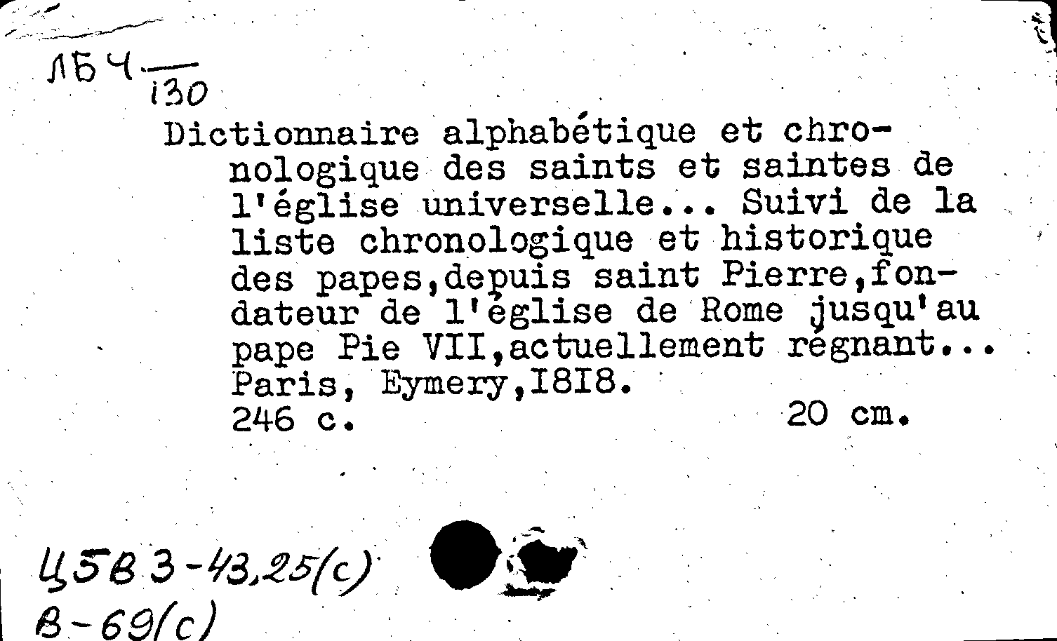 Dictionnaire alphabetique et chronologique des saints et saintes de l'eglise universelle...