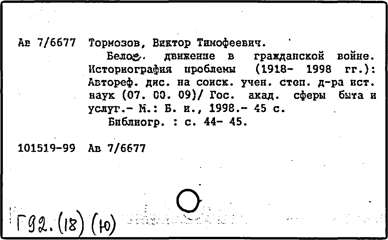 Белое движение в гражданской войне. Историография проблемы (1918-1998 гг.)