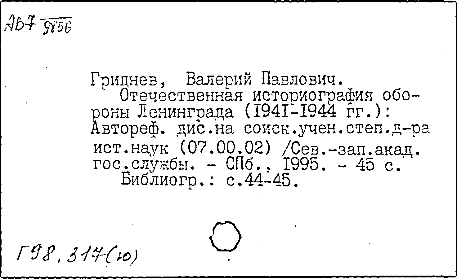 Отечественная историография обороны Ленинграда (1941-1944 гг.)