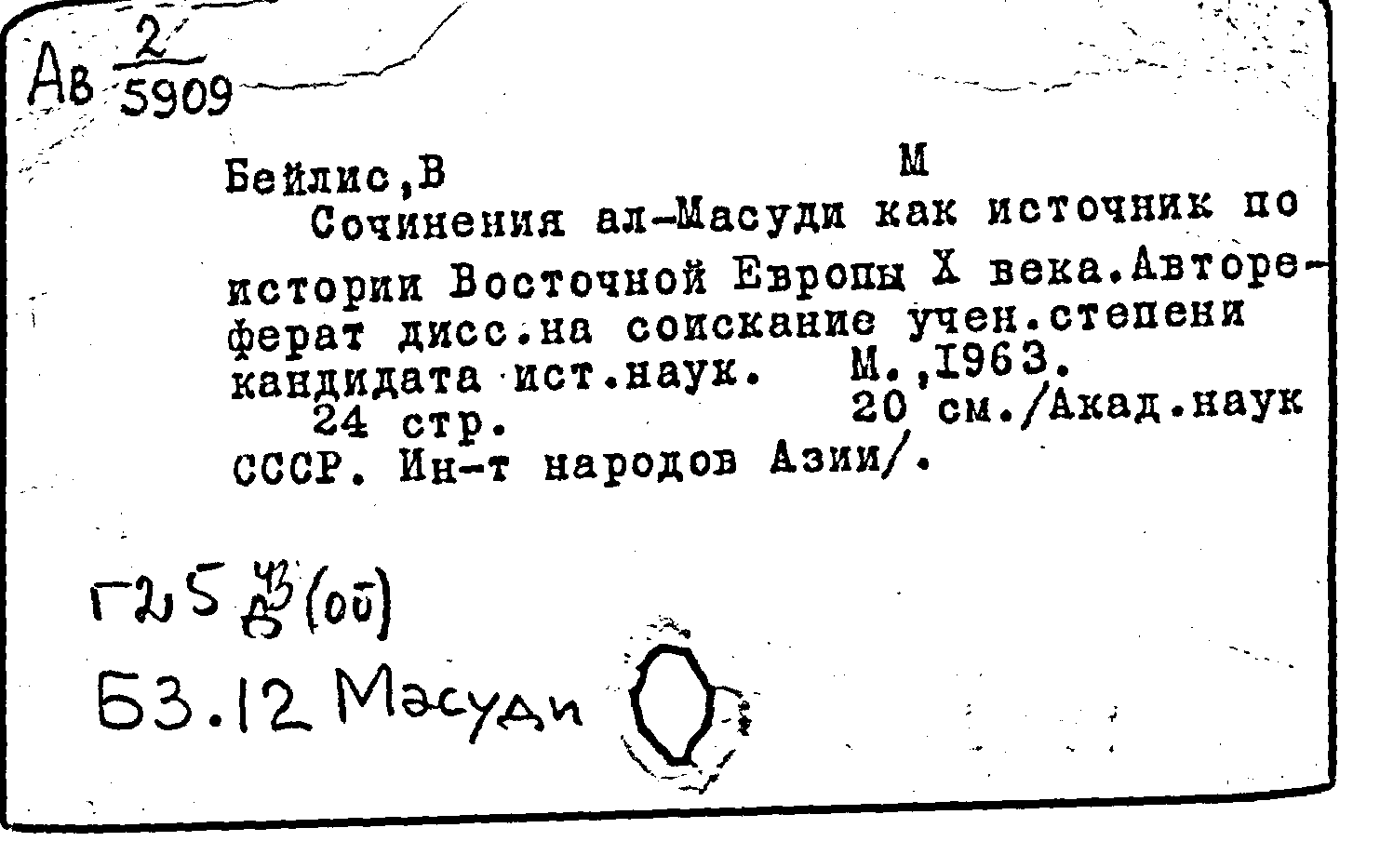 Сочинения ал-Масуди как источник по истории Восточной Европы X века