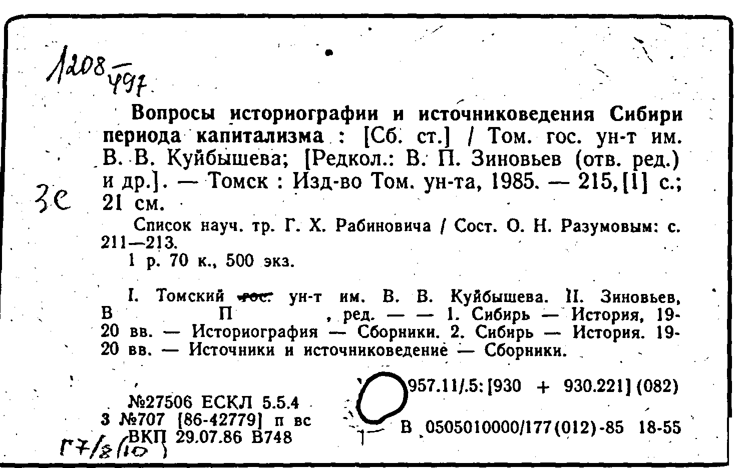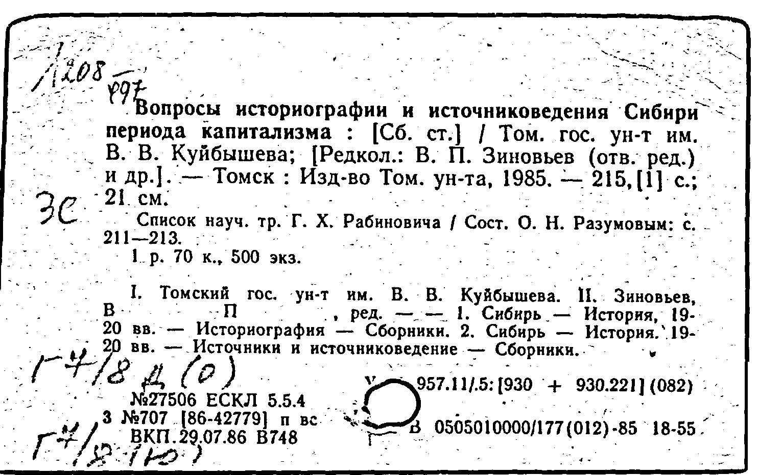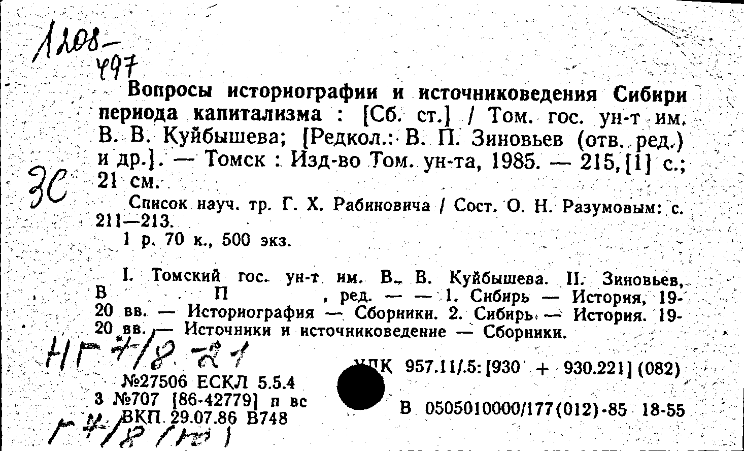 Вопросы историографии и источниковедения Сибири периода капитализма