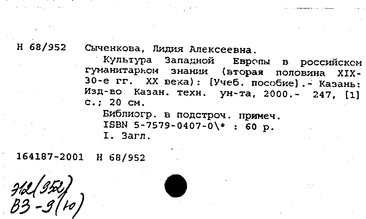 Культура Западной Европы в российском гуманитарном знании (Вторая половина XIX - 30-е гг. XX века)