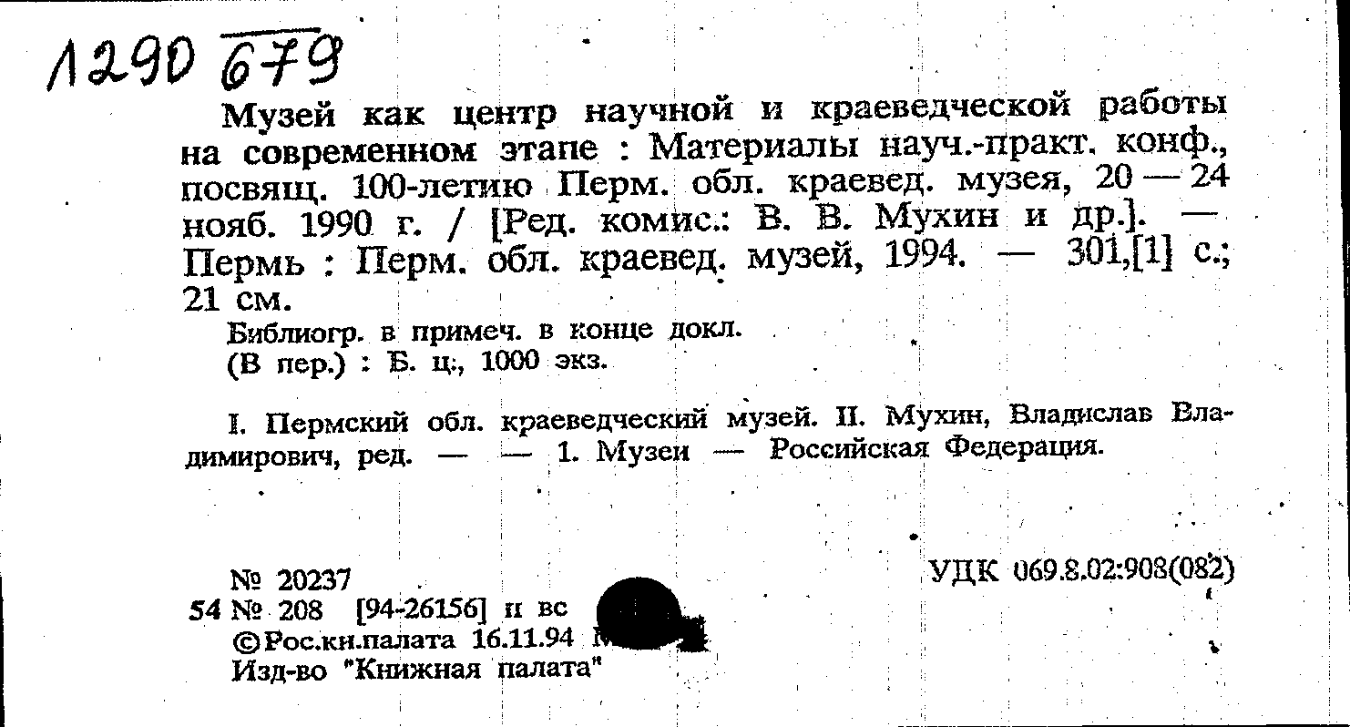Книга: Музей как центр научной и краеведческой работы на современном этапе: материалы научно-практической конференции, посвященной 100-летию Пермского областного краеведческого музея, 20 - 24 ноября 1990 г.