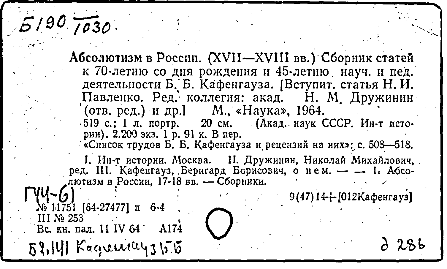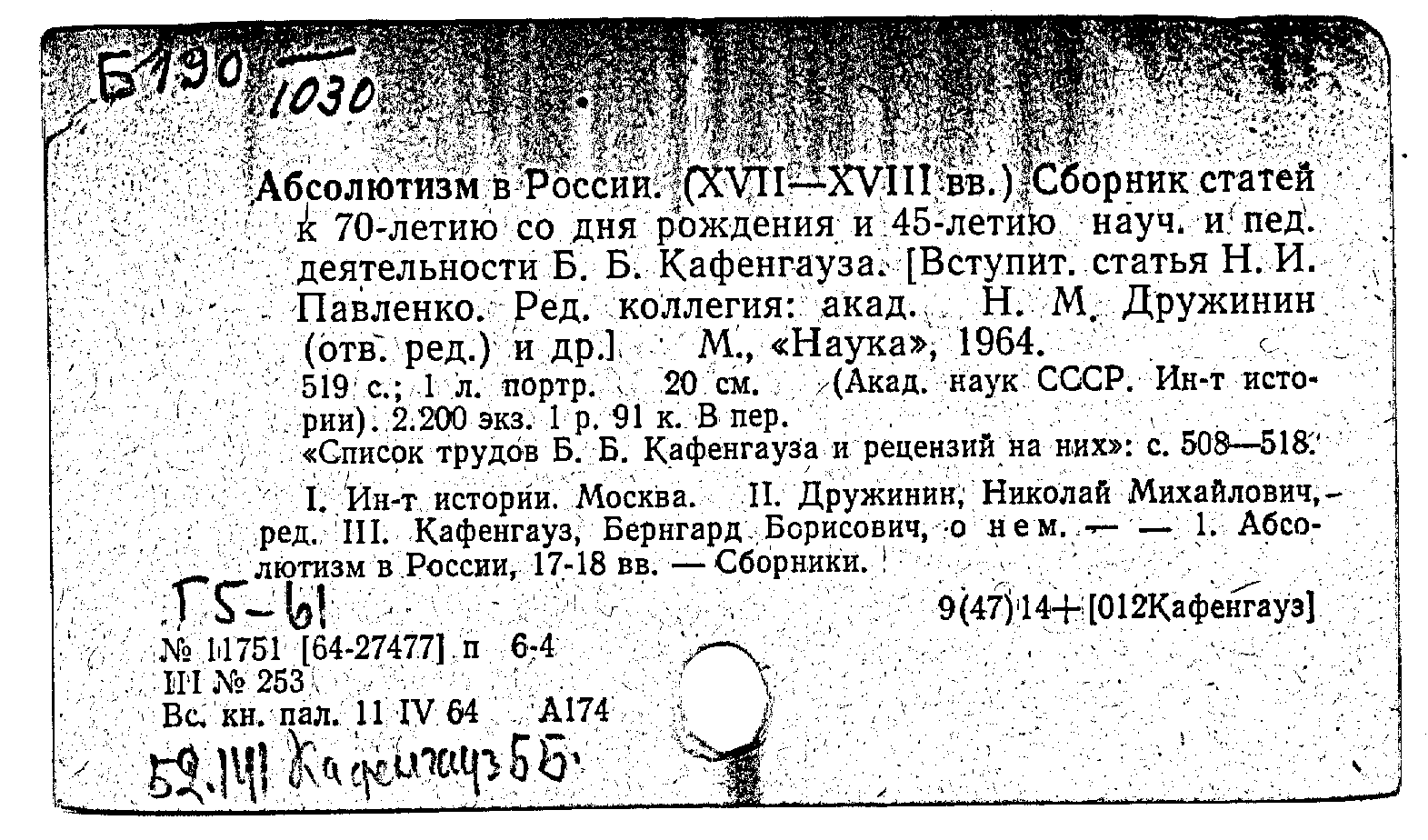 Фонд: КХ, Шифр: Б 190/1030, Инв.№: 0153489