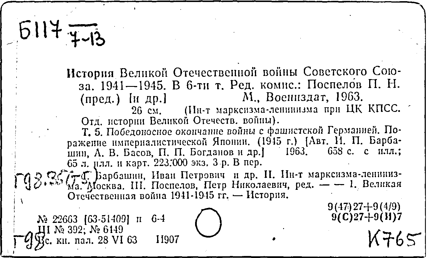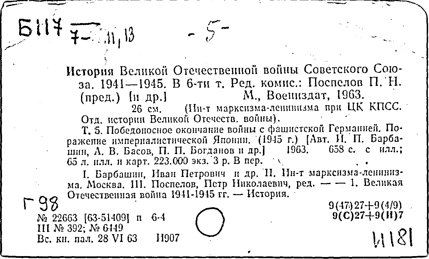 Основные проблемы пятого тома "Истории Великой Отечественной войны Советского Союза"