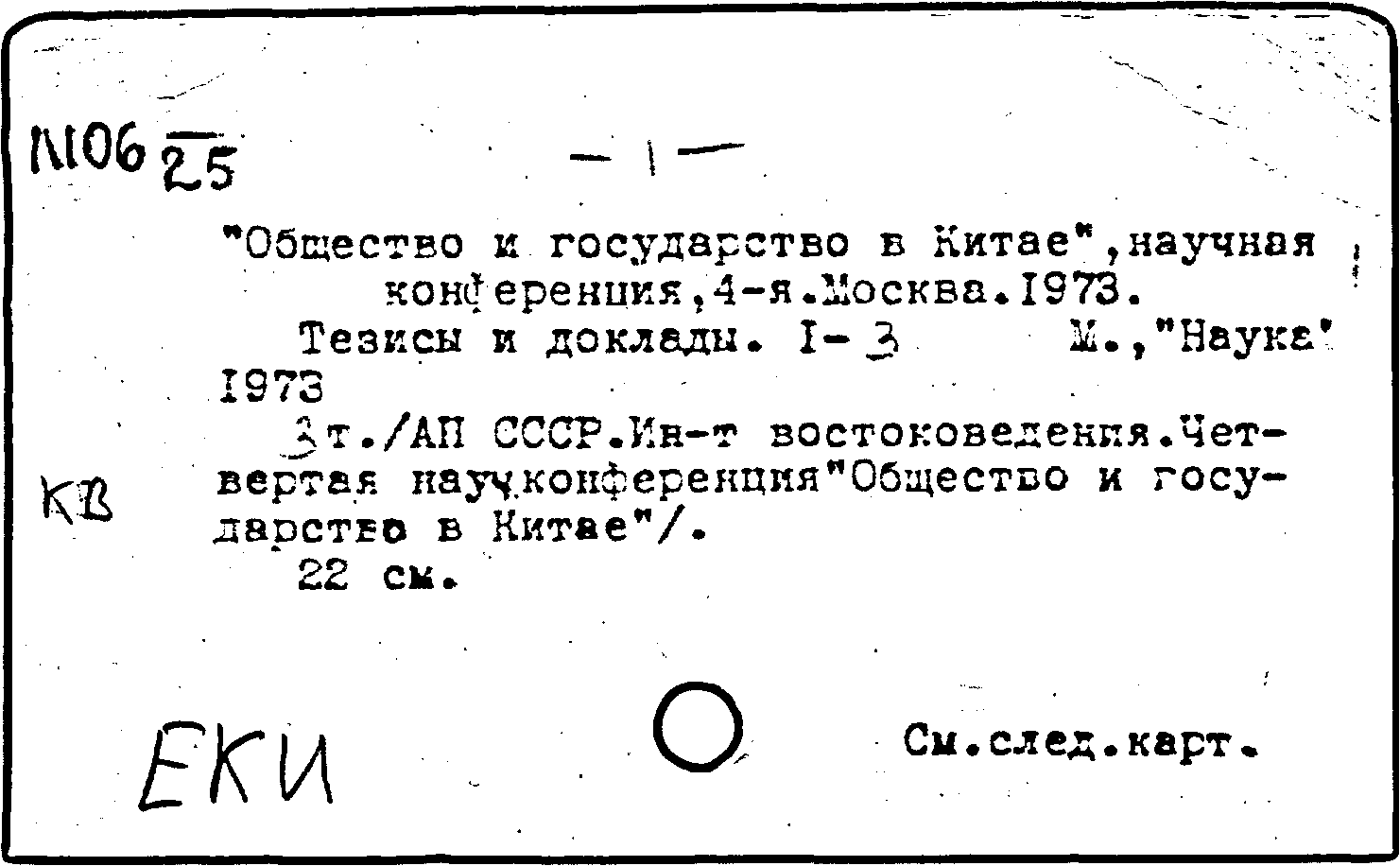 "Общество и государство в Китае", научная конференция (4; 1973; Москва).