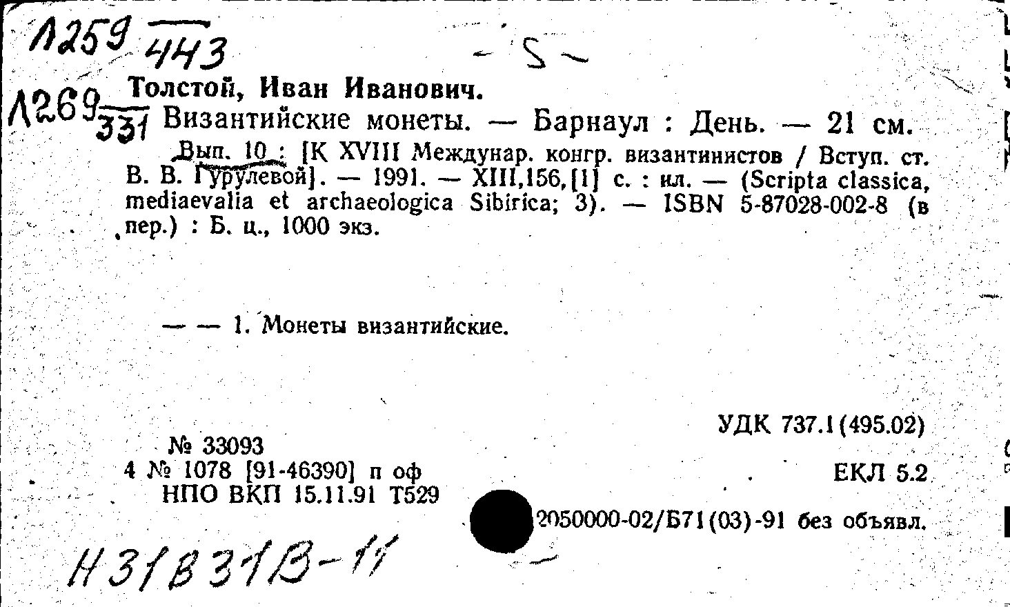 Фонд: КХ, Шифр: Л 259 /443, Инв.№: 0773329