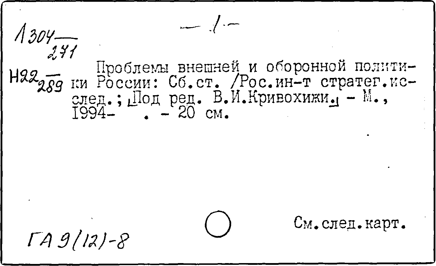 Книга: Проблемы внешней и оборонной политики России. N 6: N 6