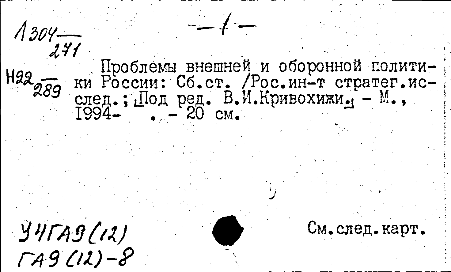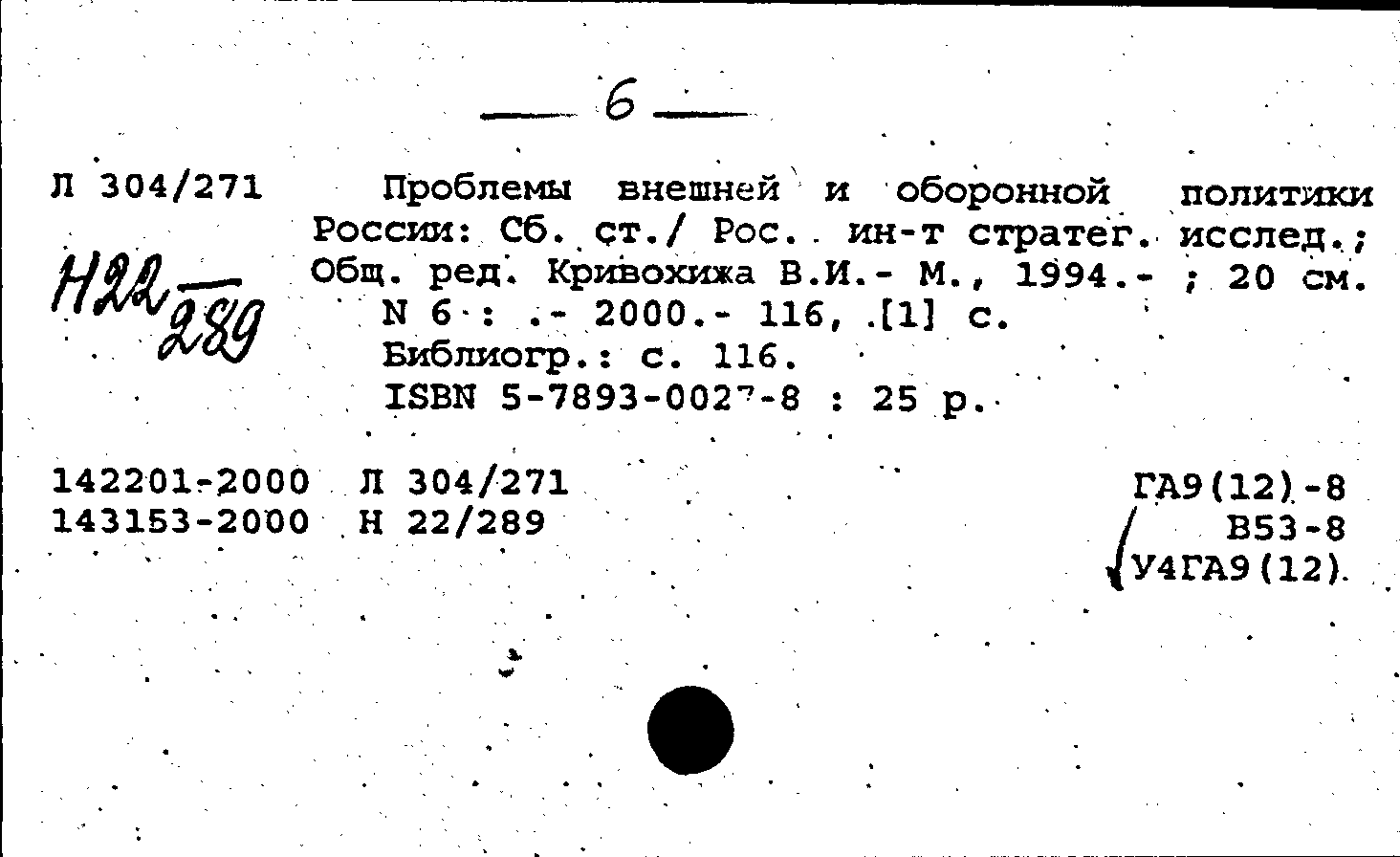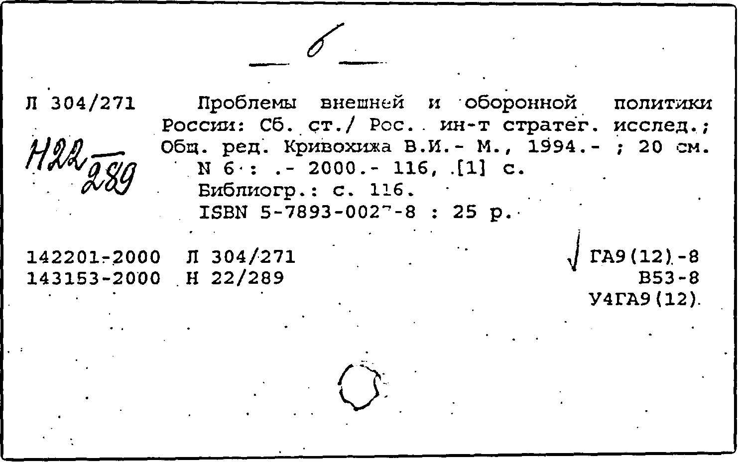 Проблемы внешней и оборонной политики России. N 6: N 6