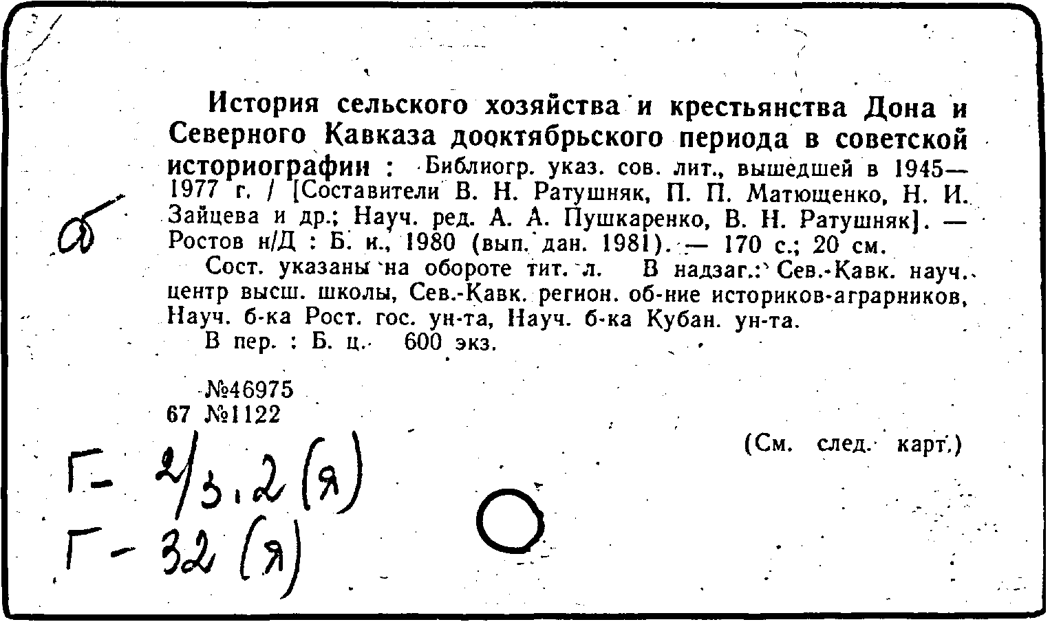 История сельского хозяйства и крестьянства Дона и Северного Кавказа дооктябрьского периода в советской историографии