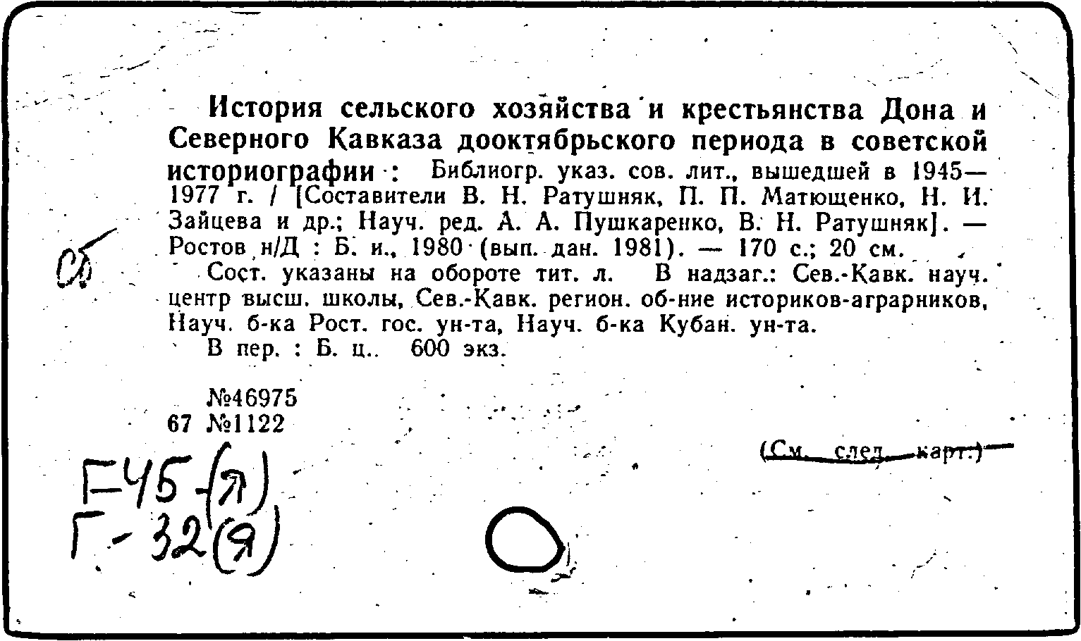 Книга: История сельского хозяйства и крестьянства Дона и Северного Кавказа дооктябрьского периода в советской историографии