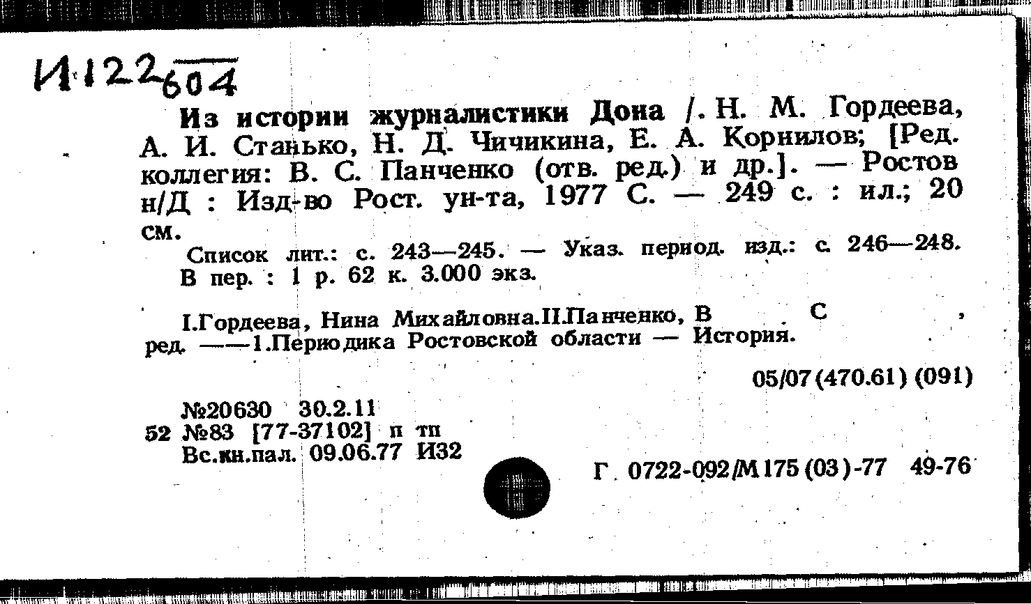 Фонд: КХ, Шифр: И 122 /604, Инв.№: 0218705