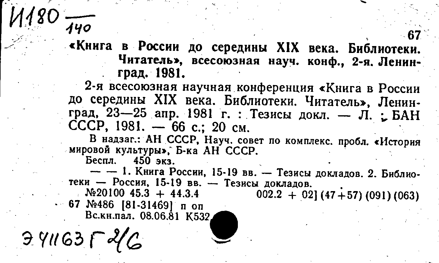 2-я всесоюзная научная конференция "Книга в России до середины XIX века. Библиотеки. Читатель", Ленинград, 23-25 апреля 1981 г.