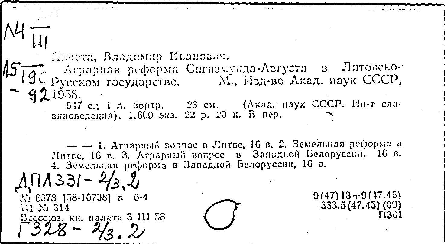 Книга: Аграрная реформа Сигизмунда-Августа в Литовско-Русском государстве