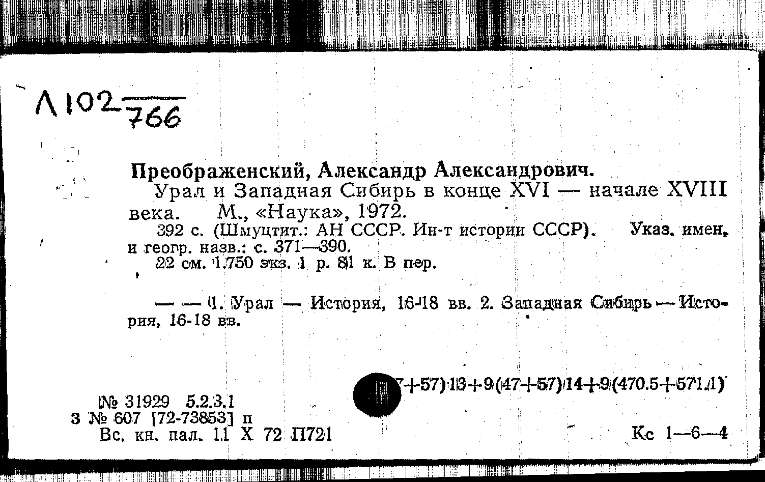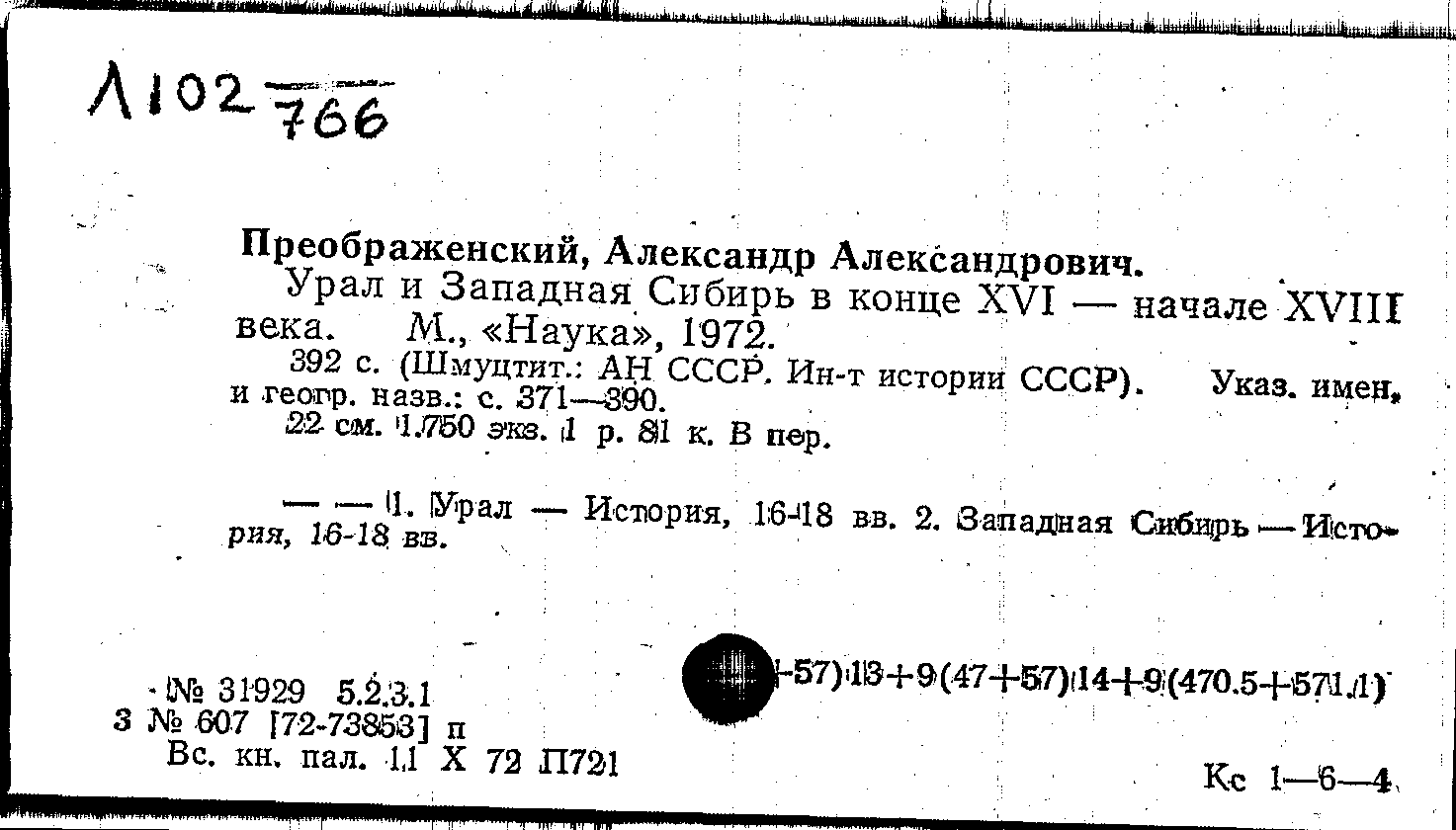 Урал и Западная Сибирь в конце XVI - начале XVIII века