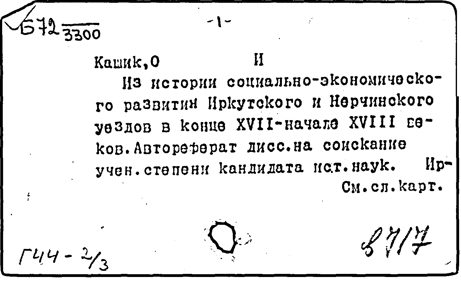 Из истории социально-экономического развития Иркутского и Нерчинского уездов в конце XVII - начале XVIII веков