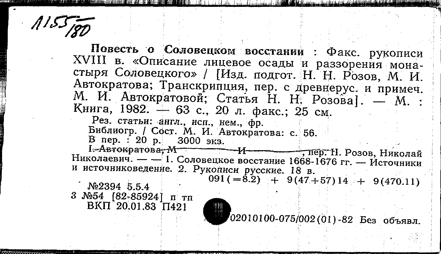 Фонд: КХ, Шифр: Л 155 /180, Инв.№: 0237577