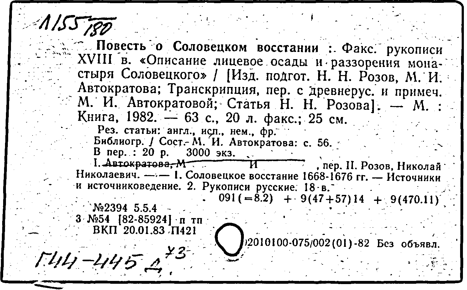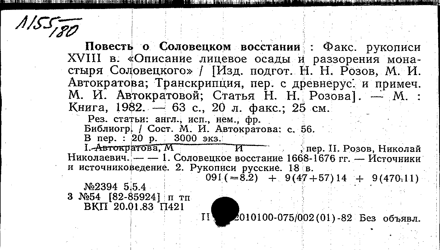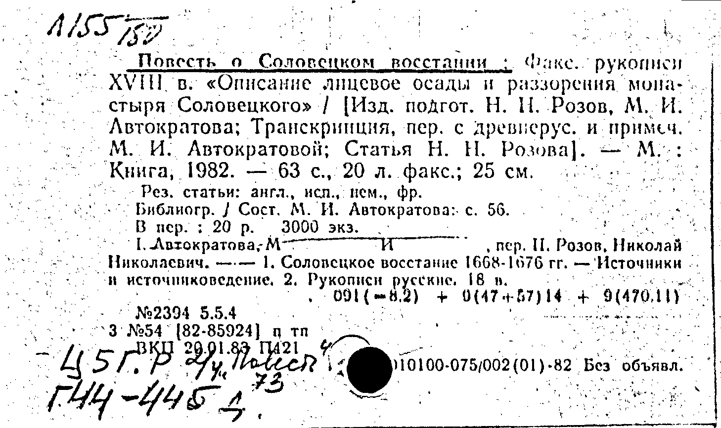 Древнерусская литература, 10-17 вв. \ Отдельные памятники древнерусской литературы \ Повесть о Соловецком восстании (1)