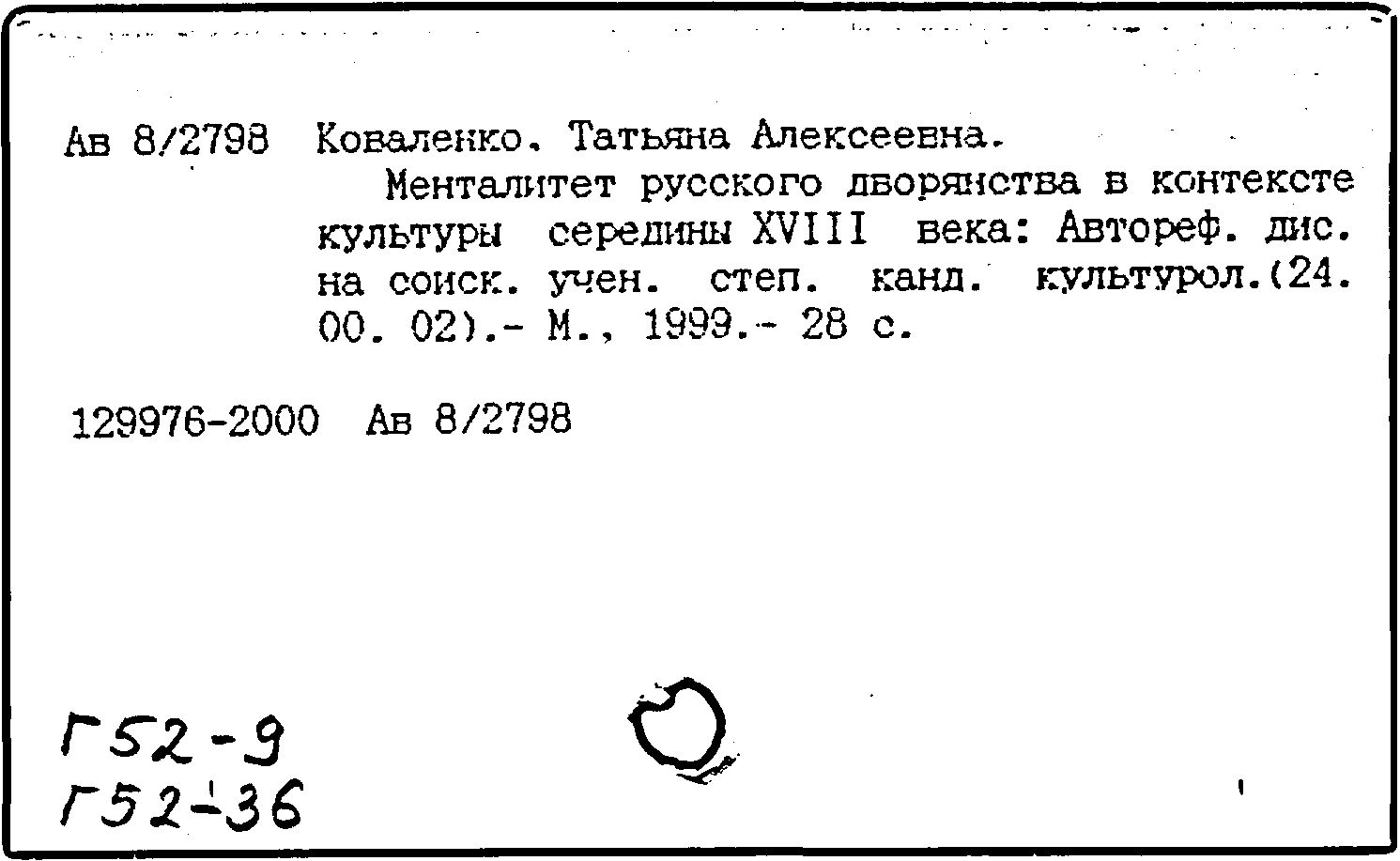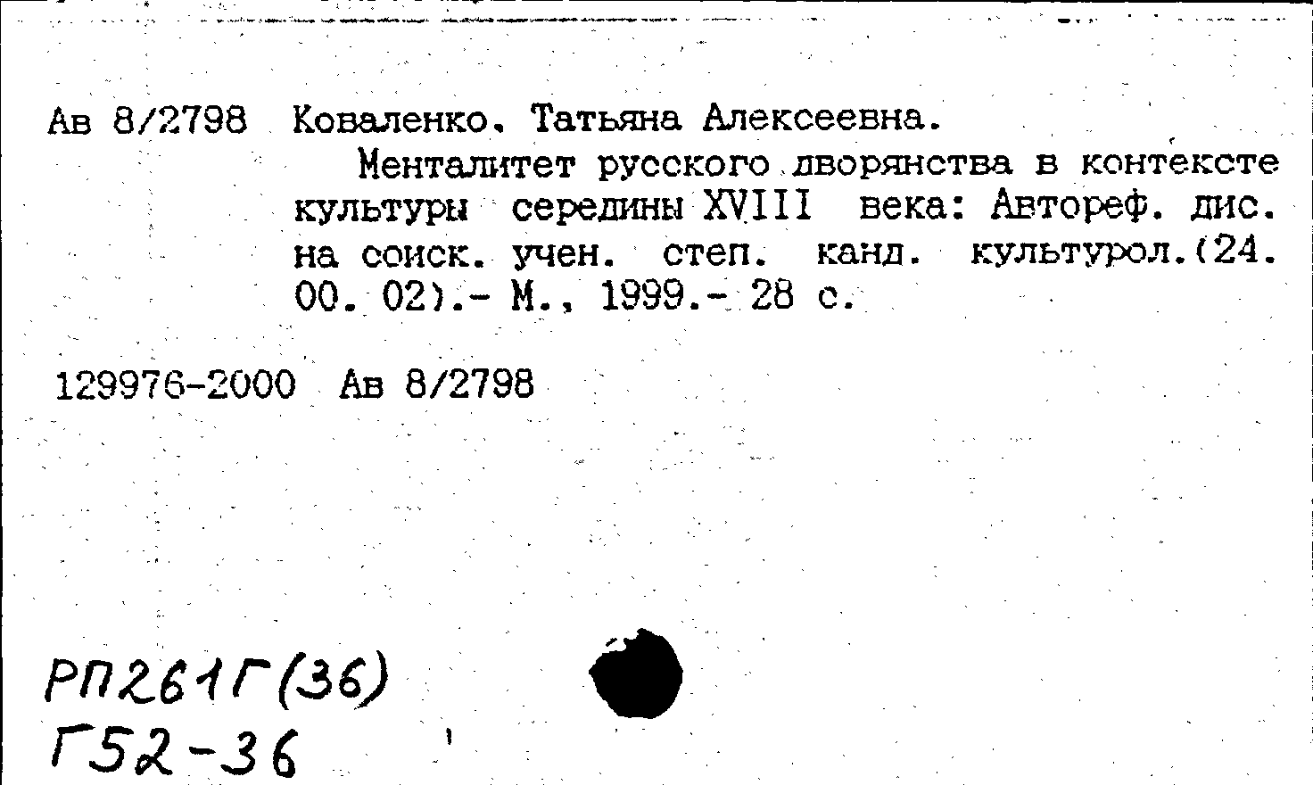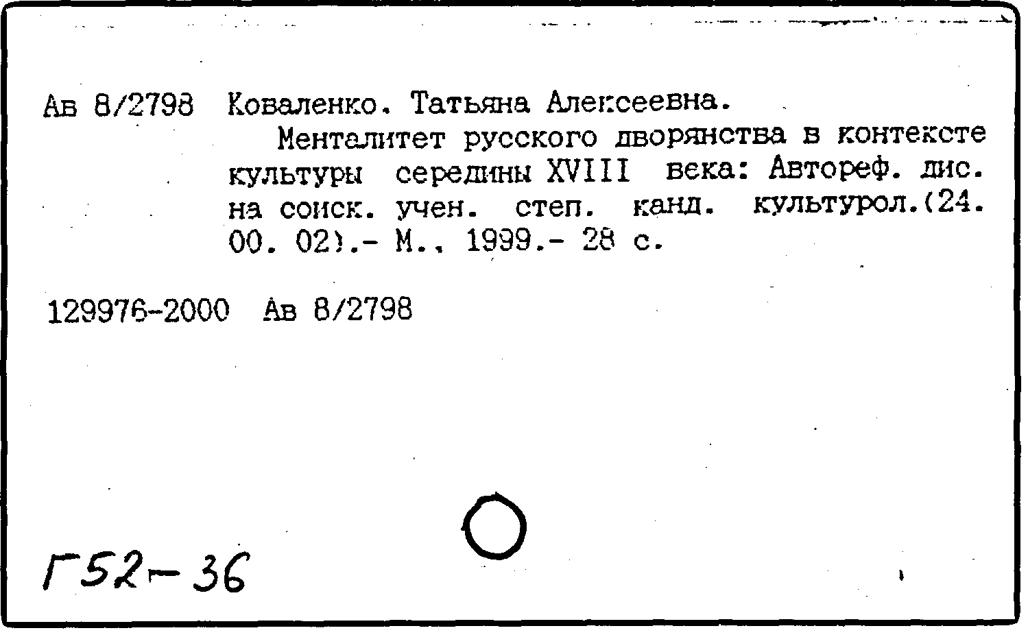 Менталитет русского дворянства в контексте культуры середины XVIII века