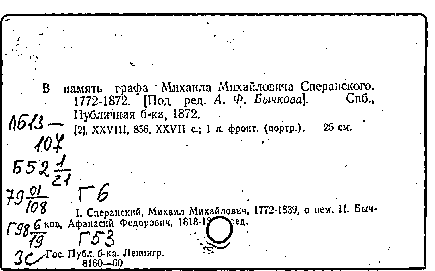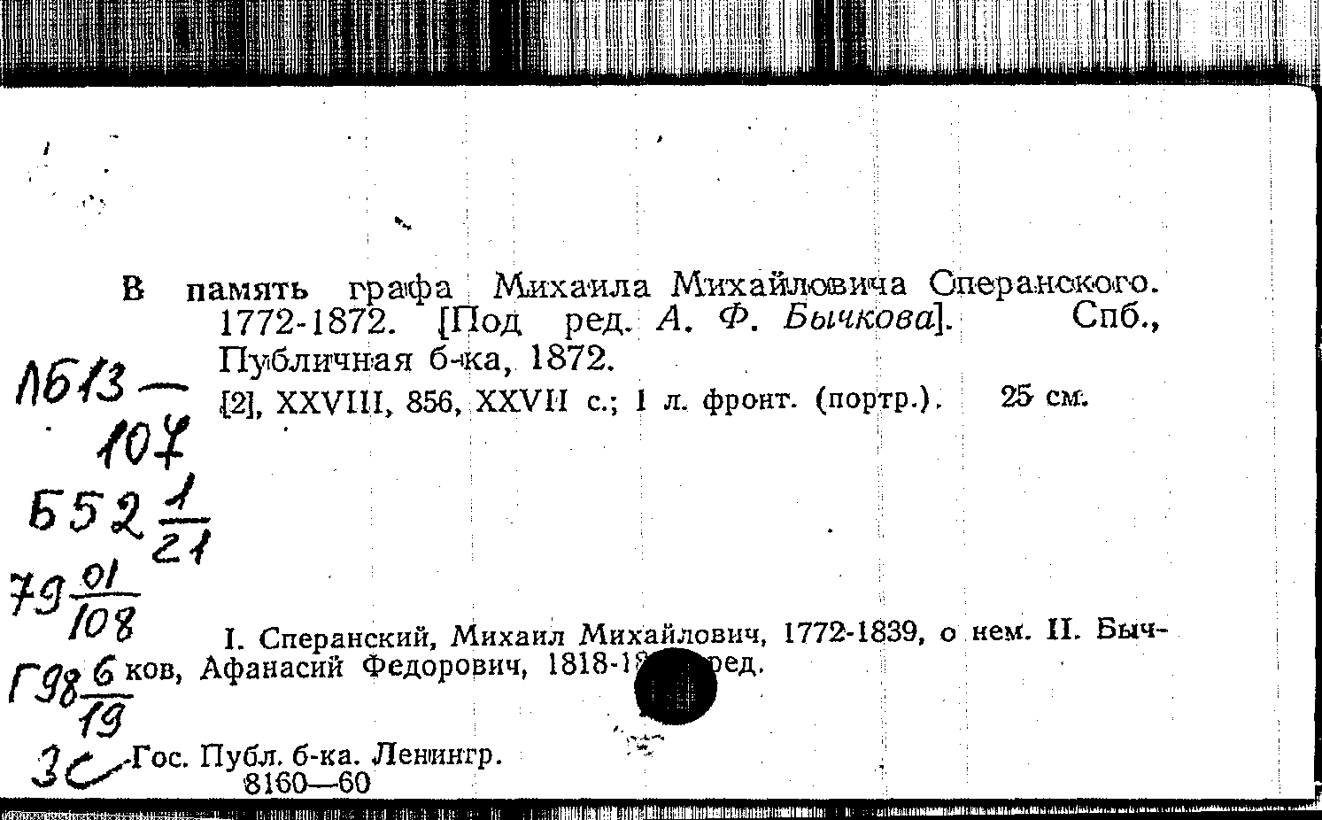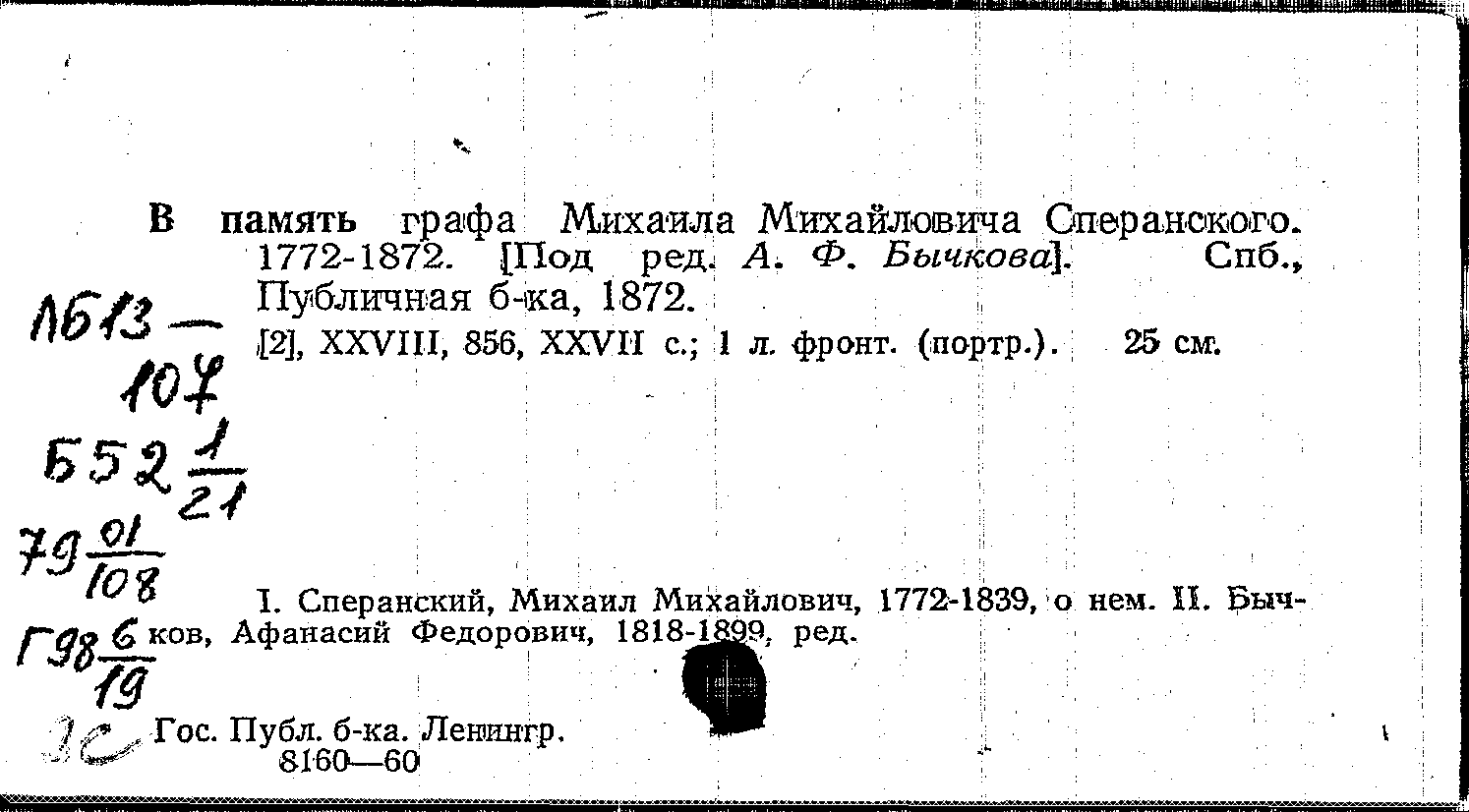 В память графа Михаила Михайловича Сперанского. 1772-1872