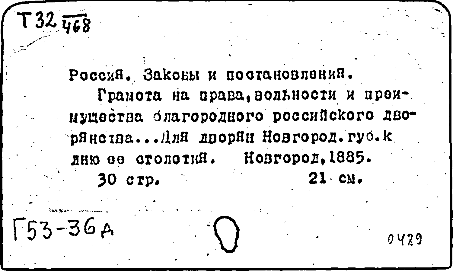 Грамота на права, вольности и преимущества благородного российского дворянства...