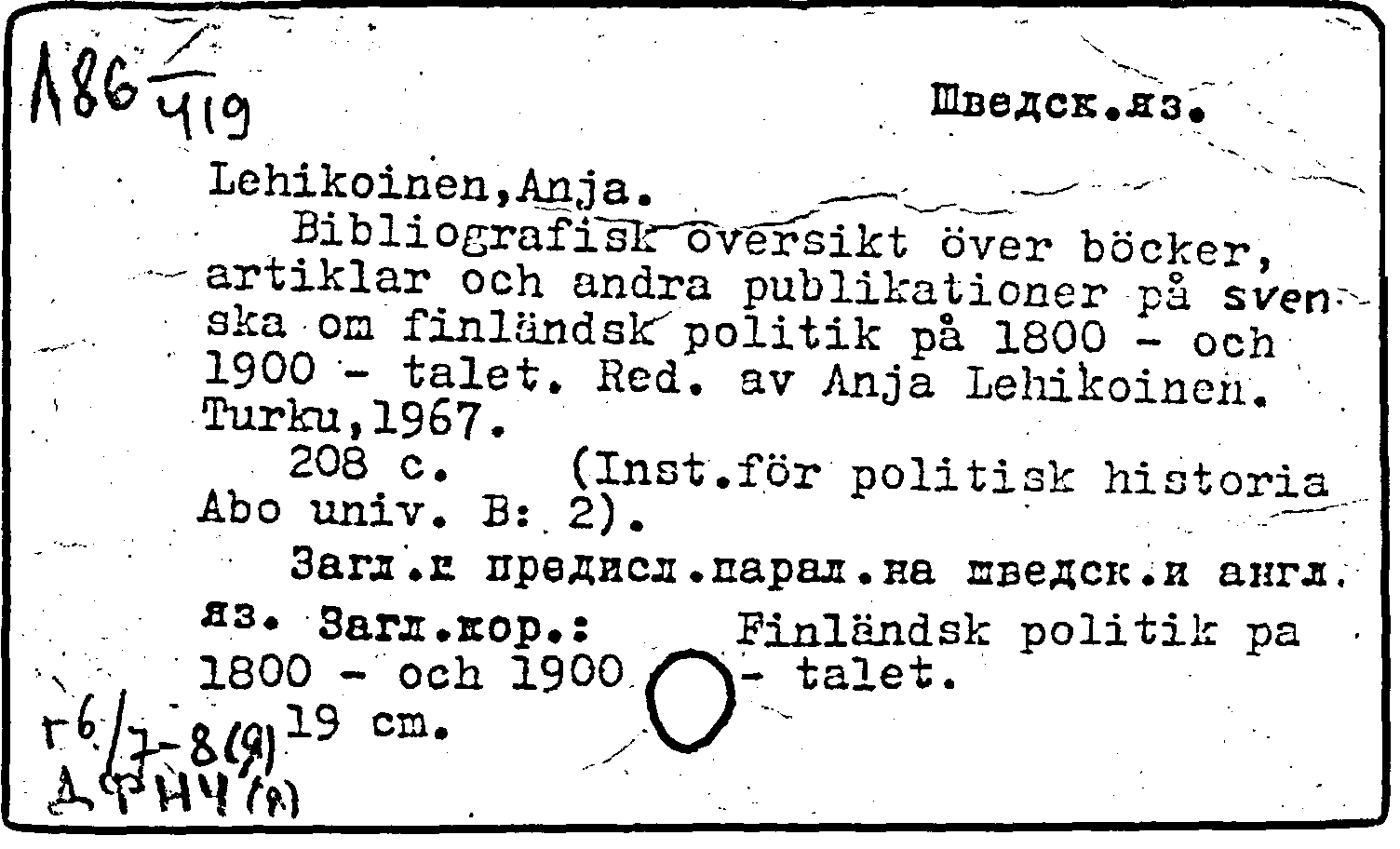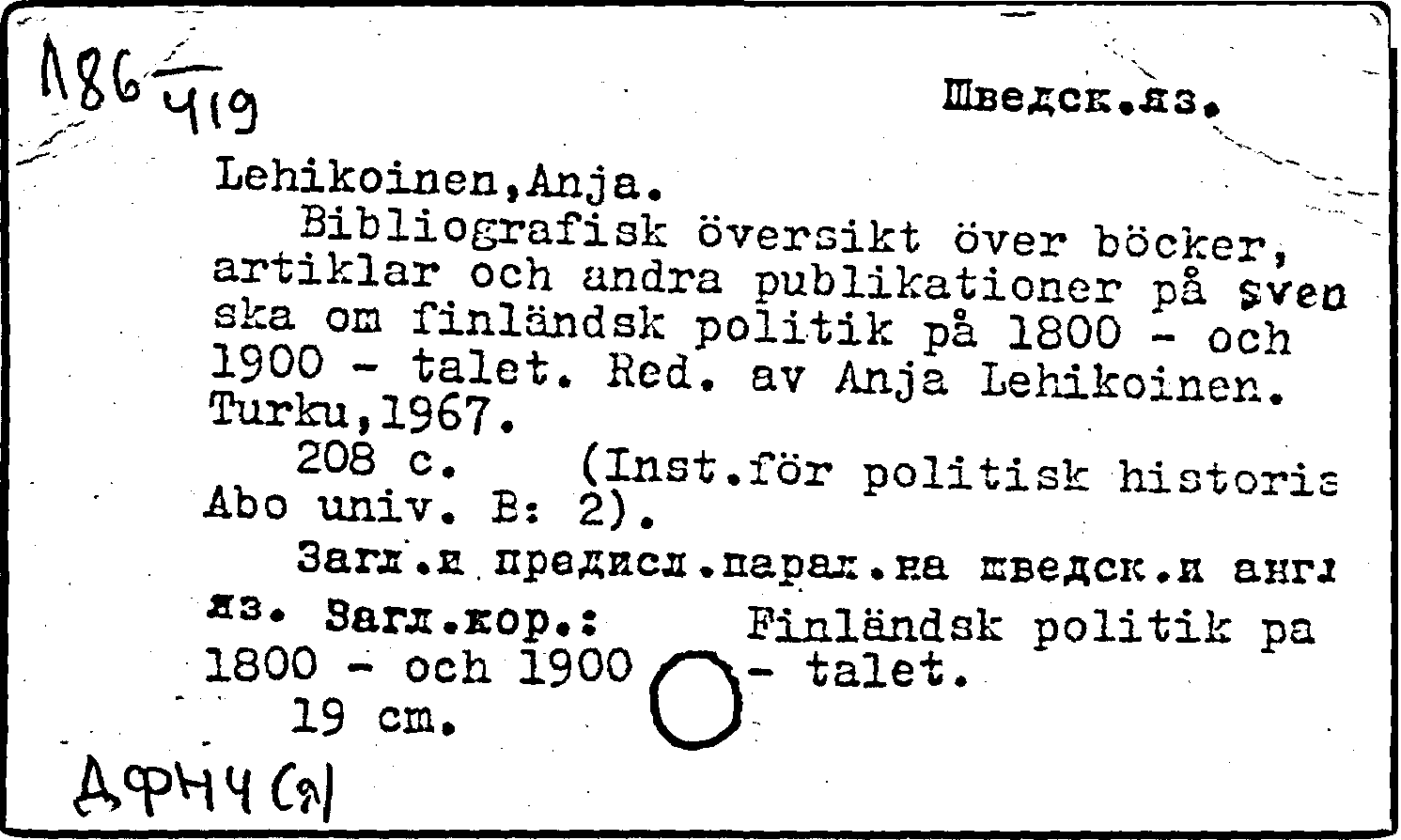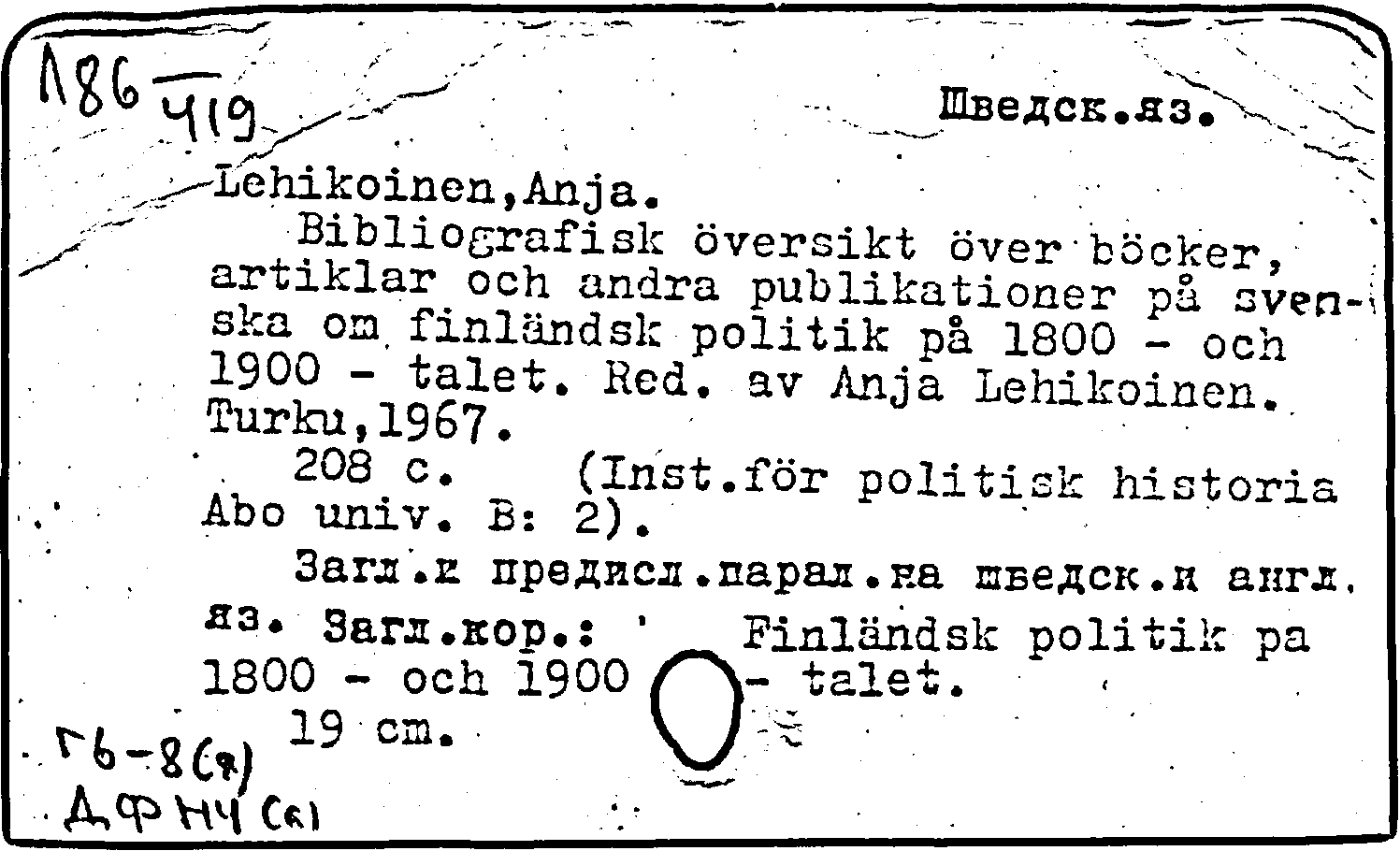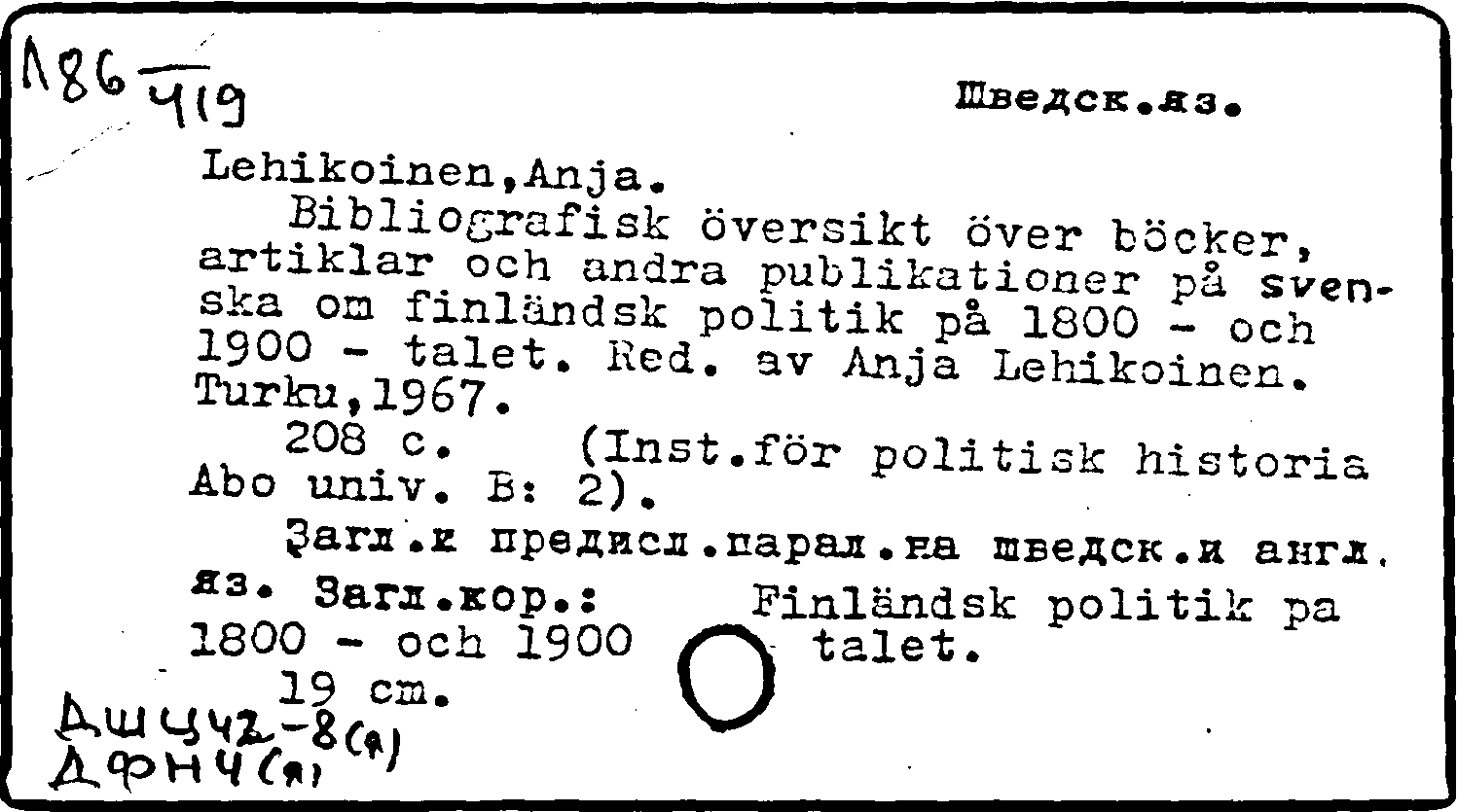 Книга: Bibliografisk oversikt over bocker, artiklar och andra publikationer pa svenska om finlandsk politik pa 1800 - och 1900 - talet