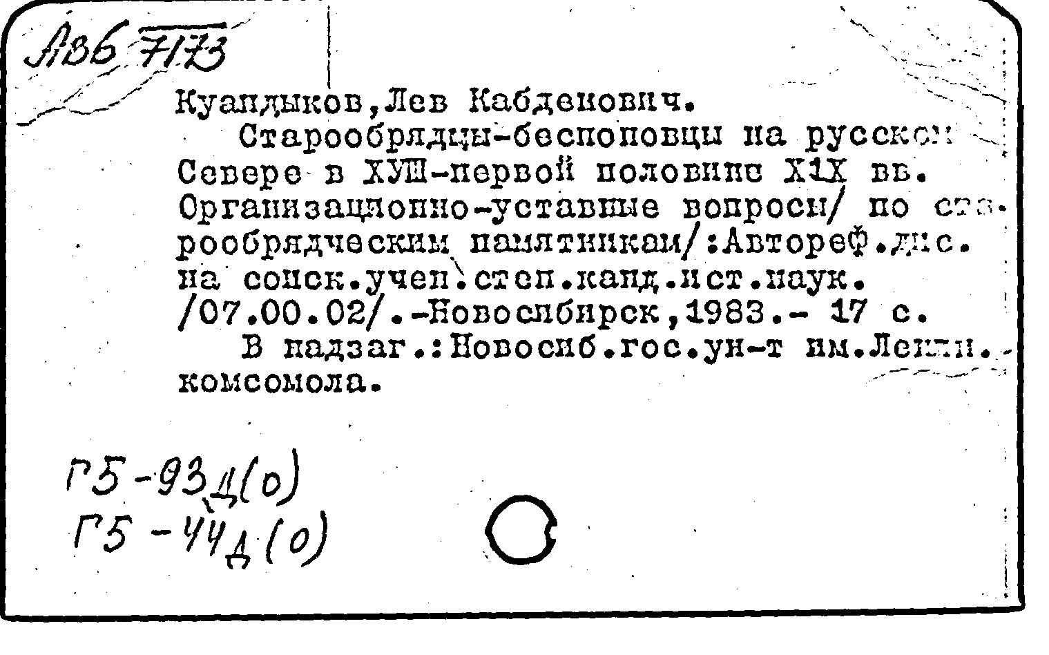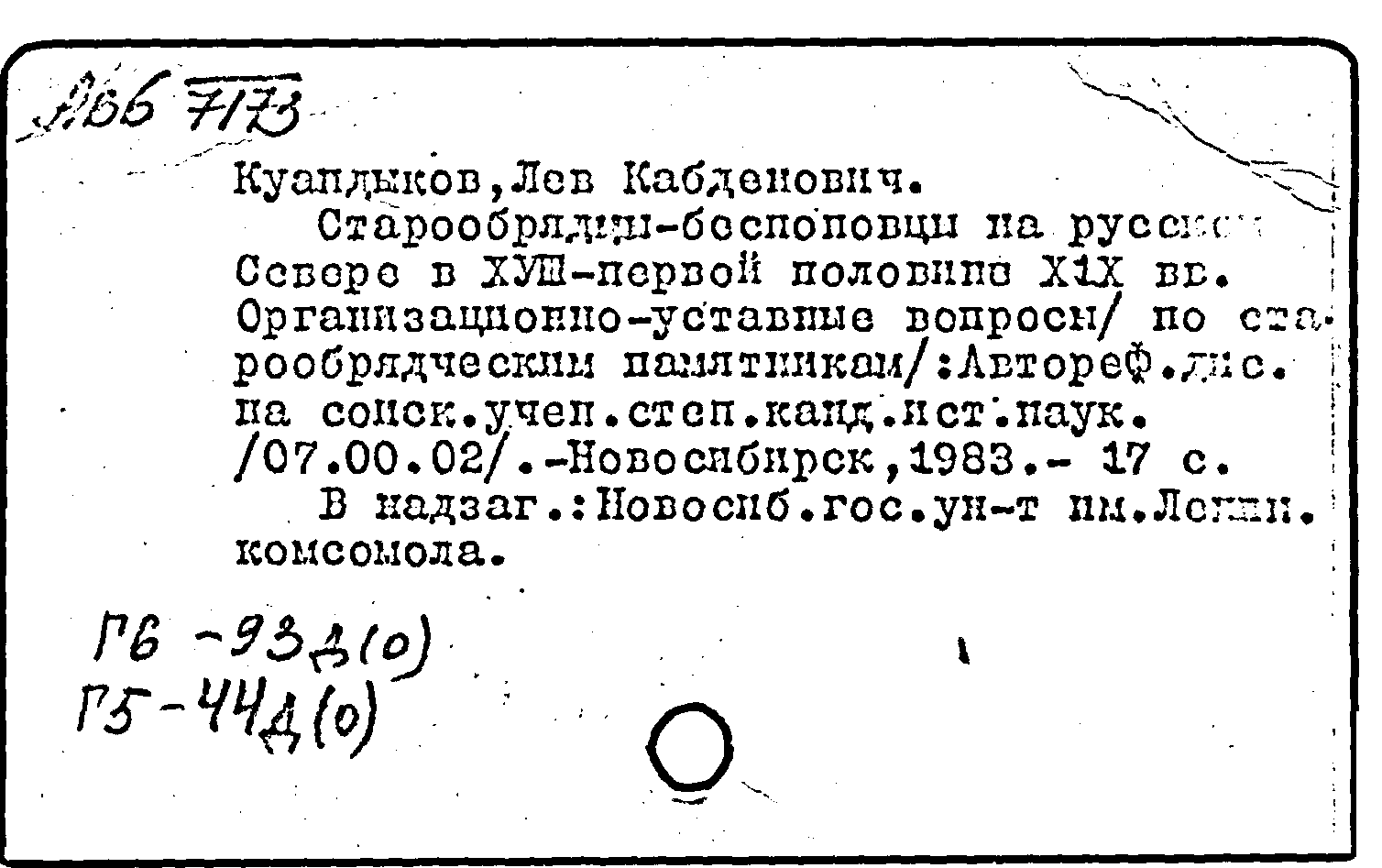 Фонд: КХ, Шифр: Ав 6 /7173, Инв.№: 0258935