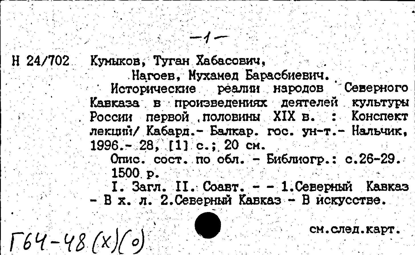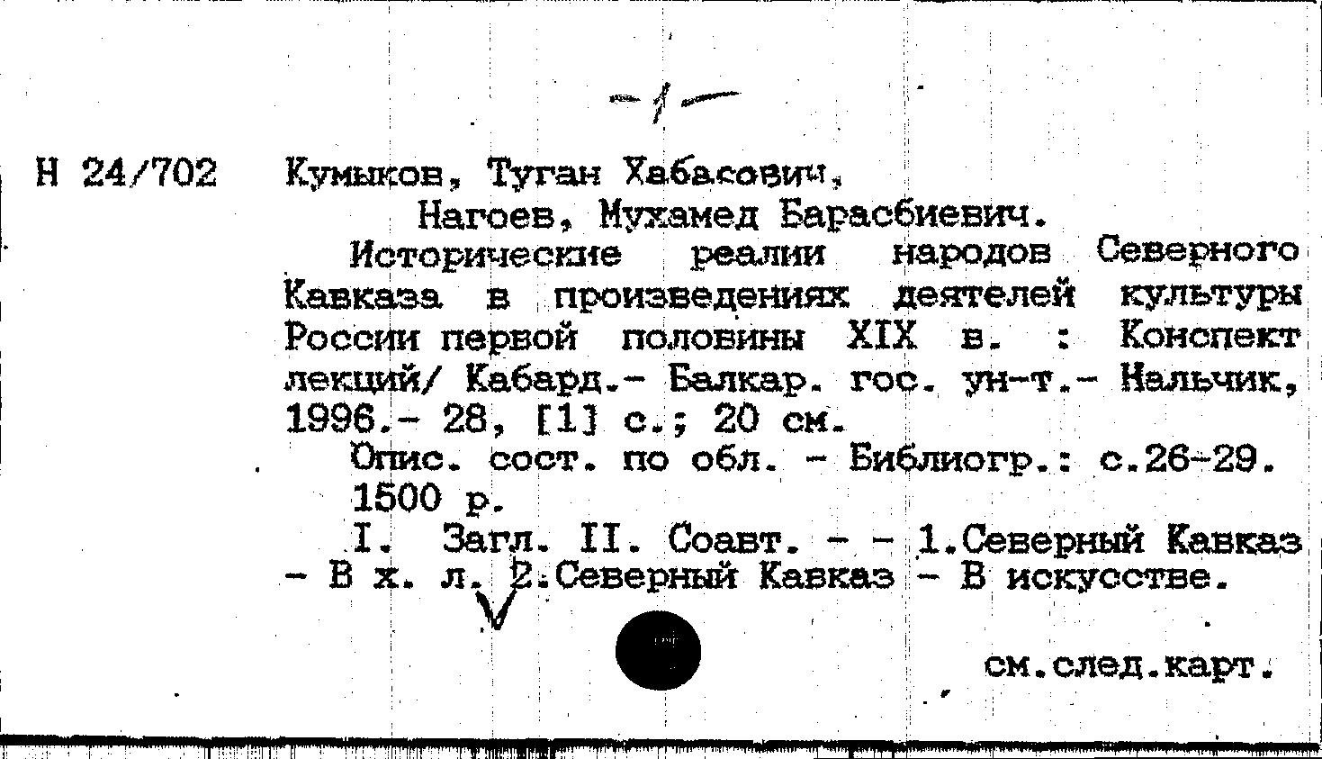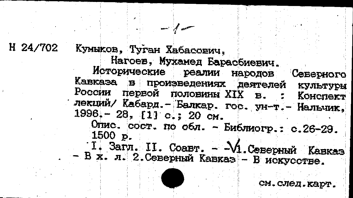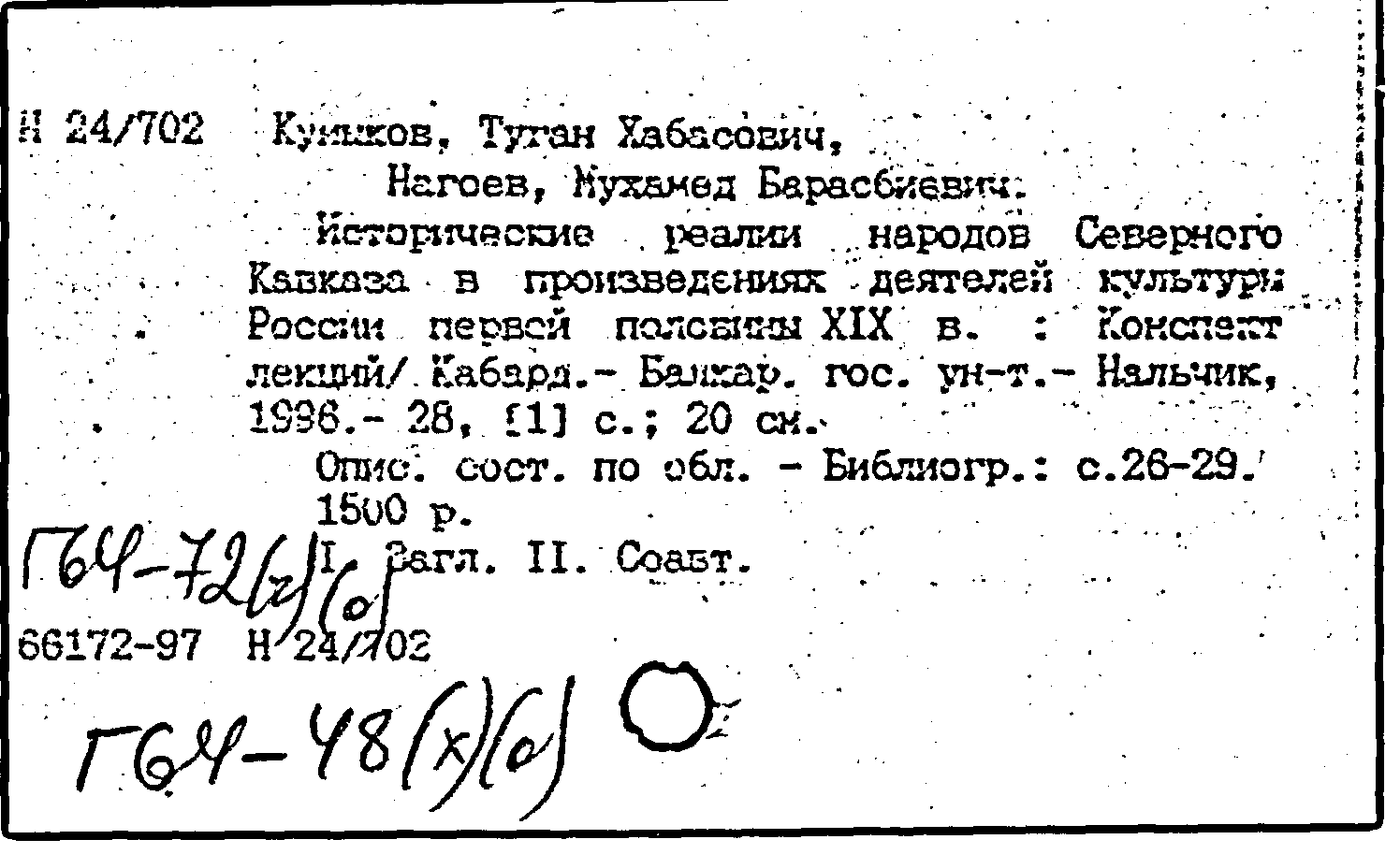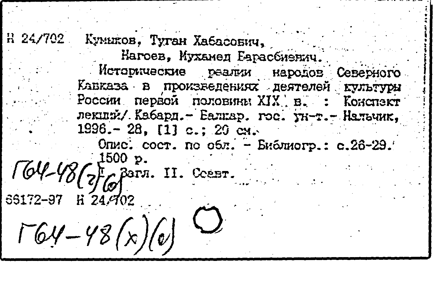 Исторические реалии народов Северного Кавказа в произведениях деятелей культуры России первой половины XIX в.