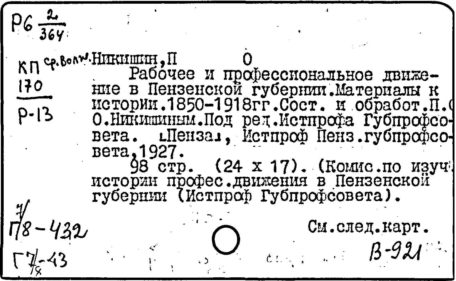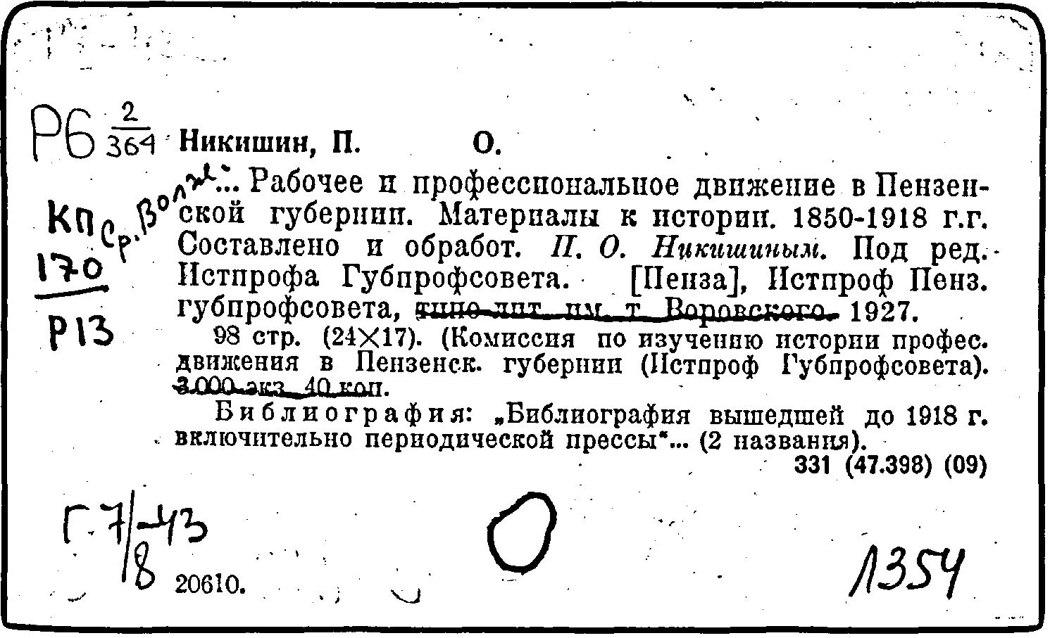 Книга: ... Рабочее и профессиональное движение в Пензенской губернии