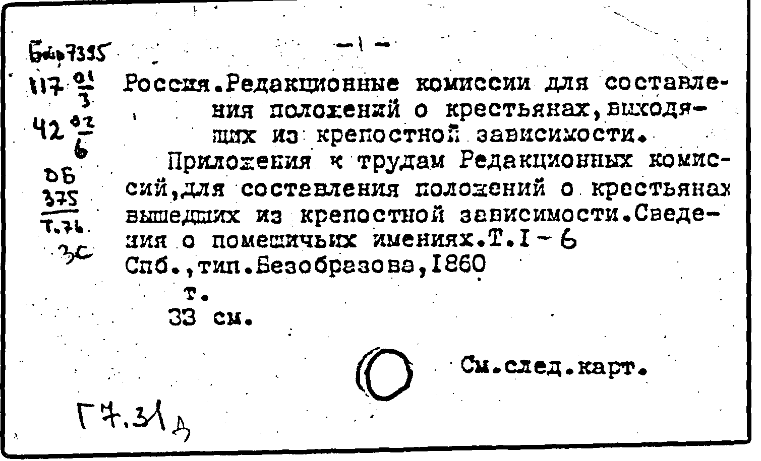 Россия. Редакционные комиссии для составления положений о крестьянах, выходящих из крепостной зависимости
