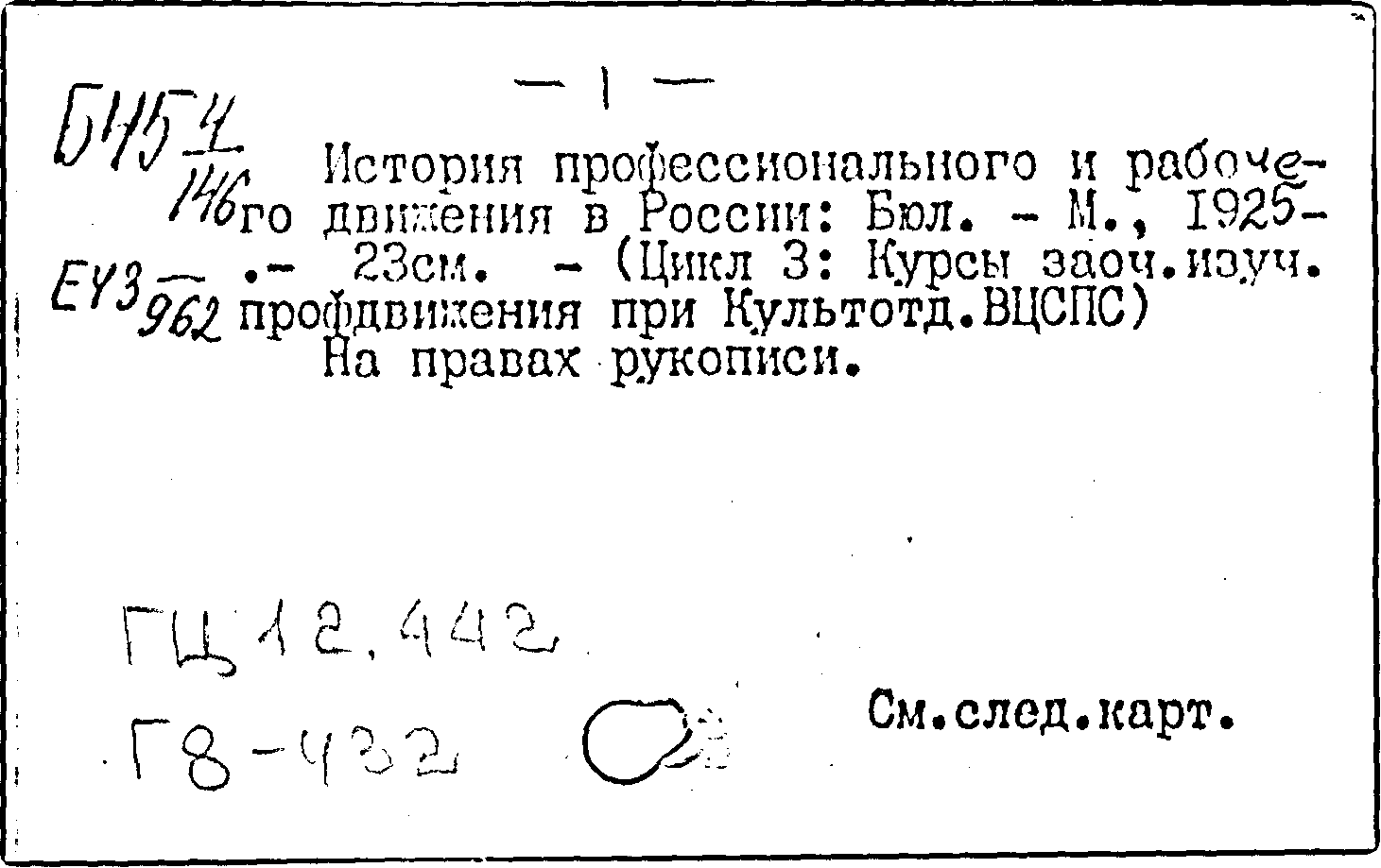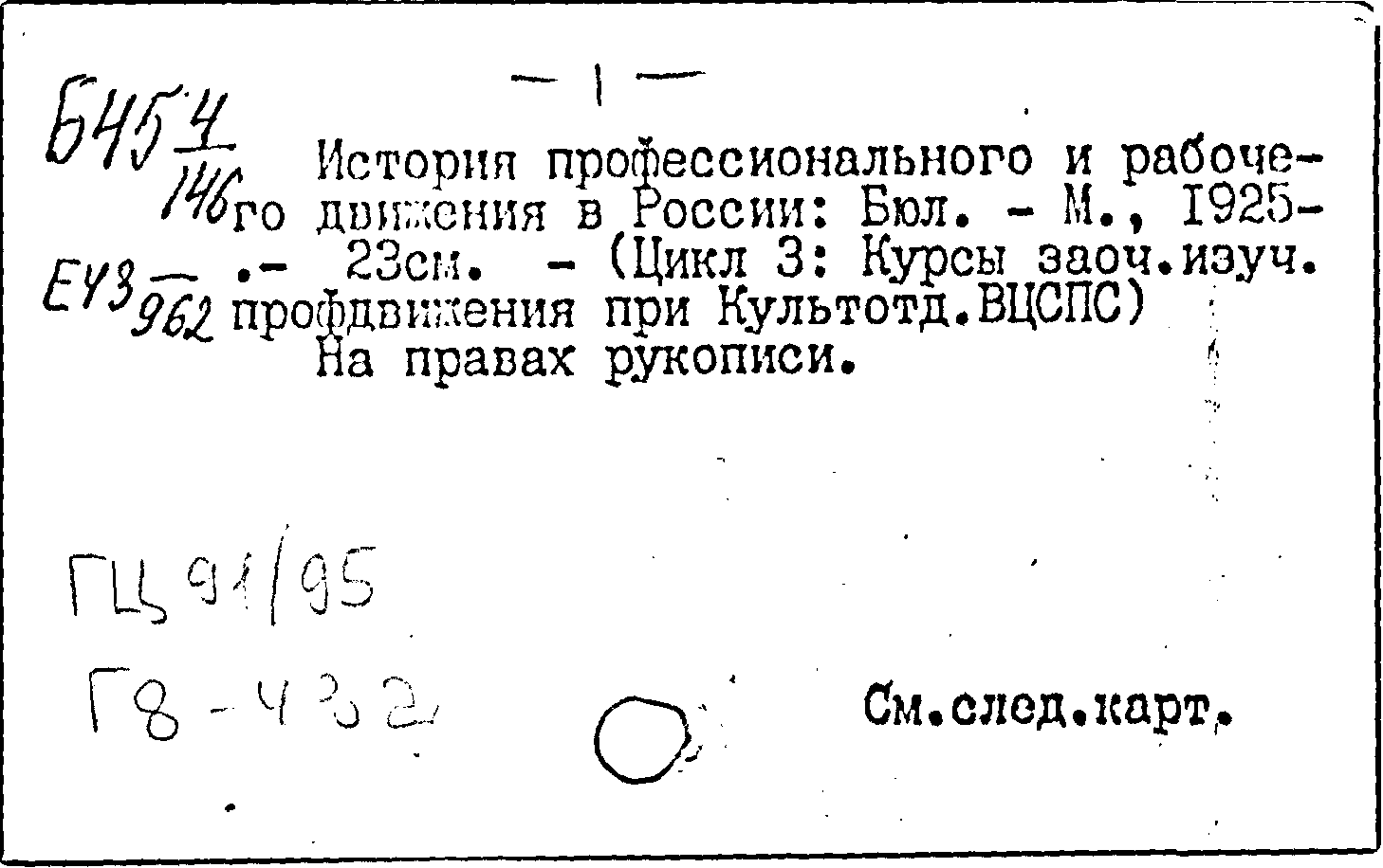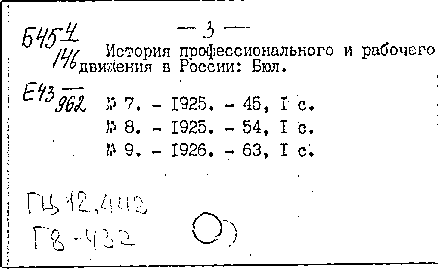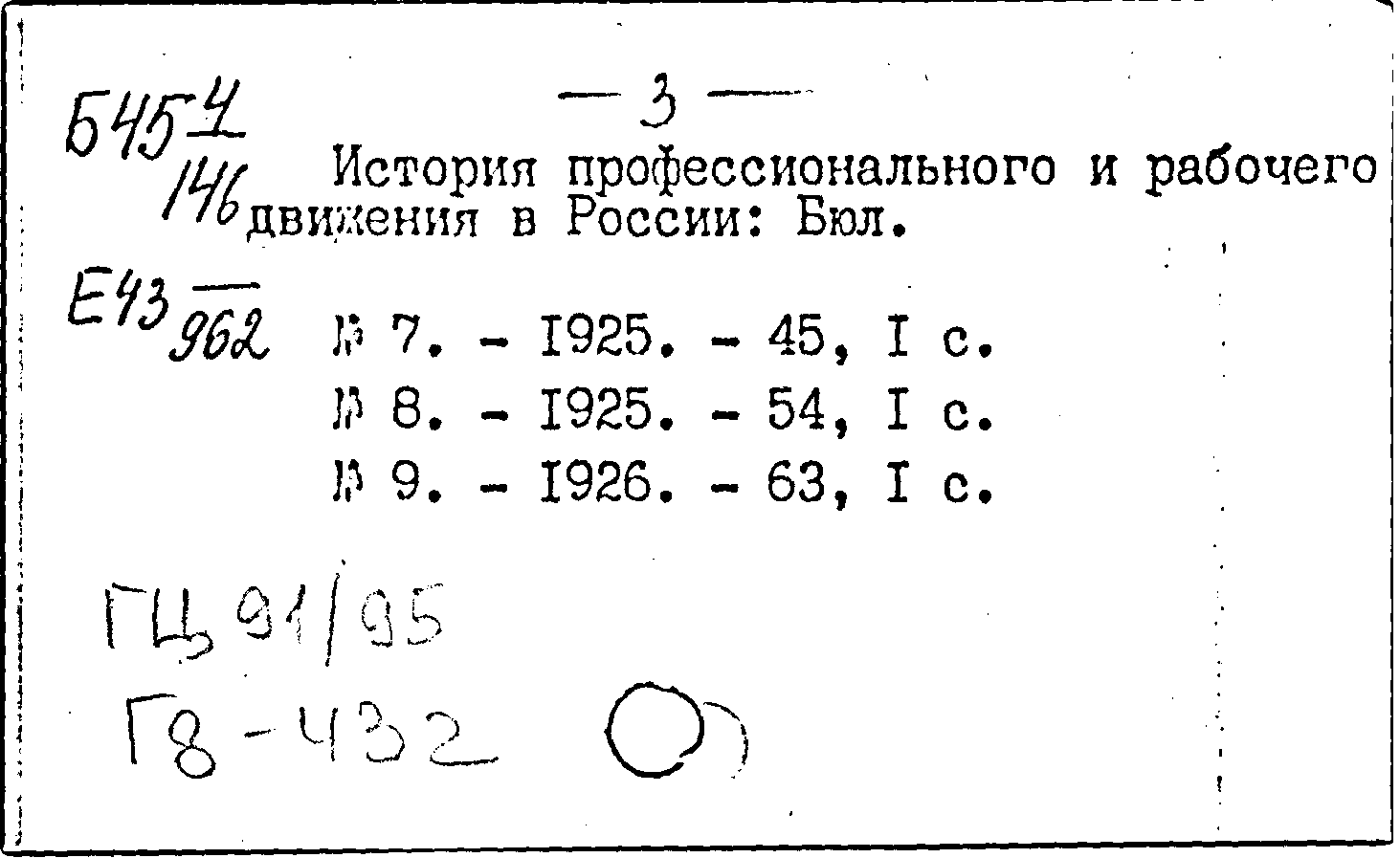 История профессионального и рабочего движения в России. N 9