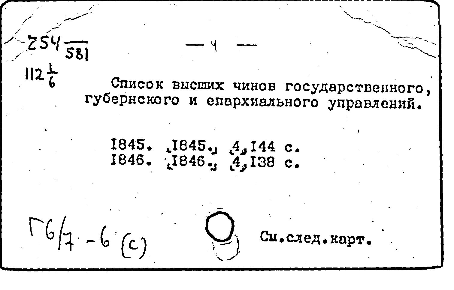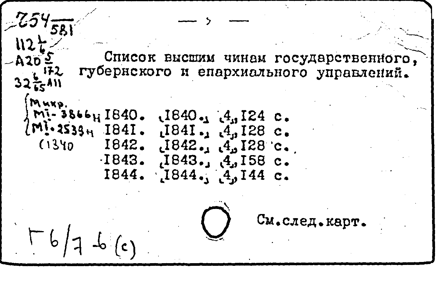 Список высшим чинам государственного, губернского и епархиального управлений. 1846