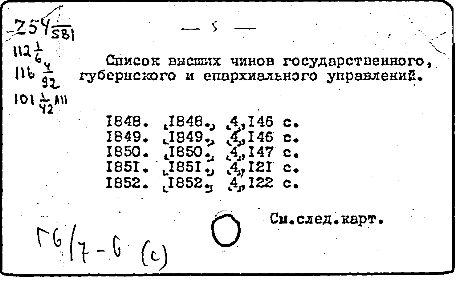 Список высшим чинам государственного, губернского и епархиального управлений. 1852