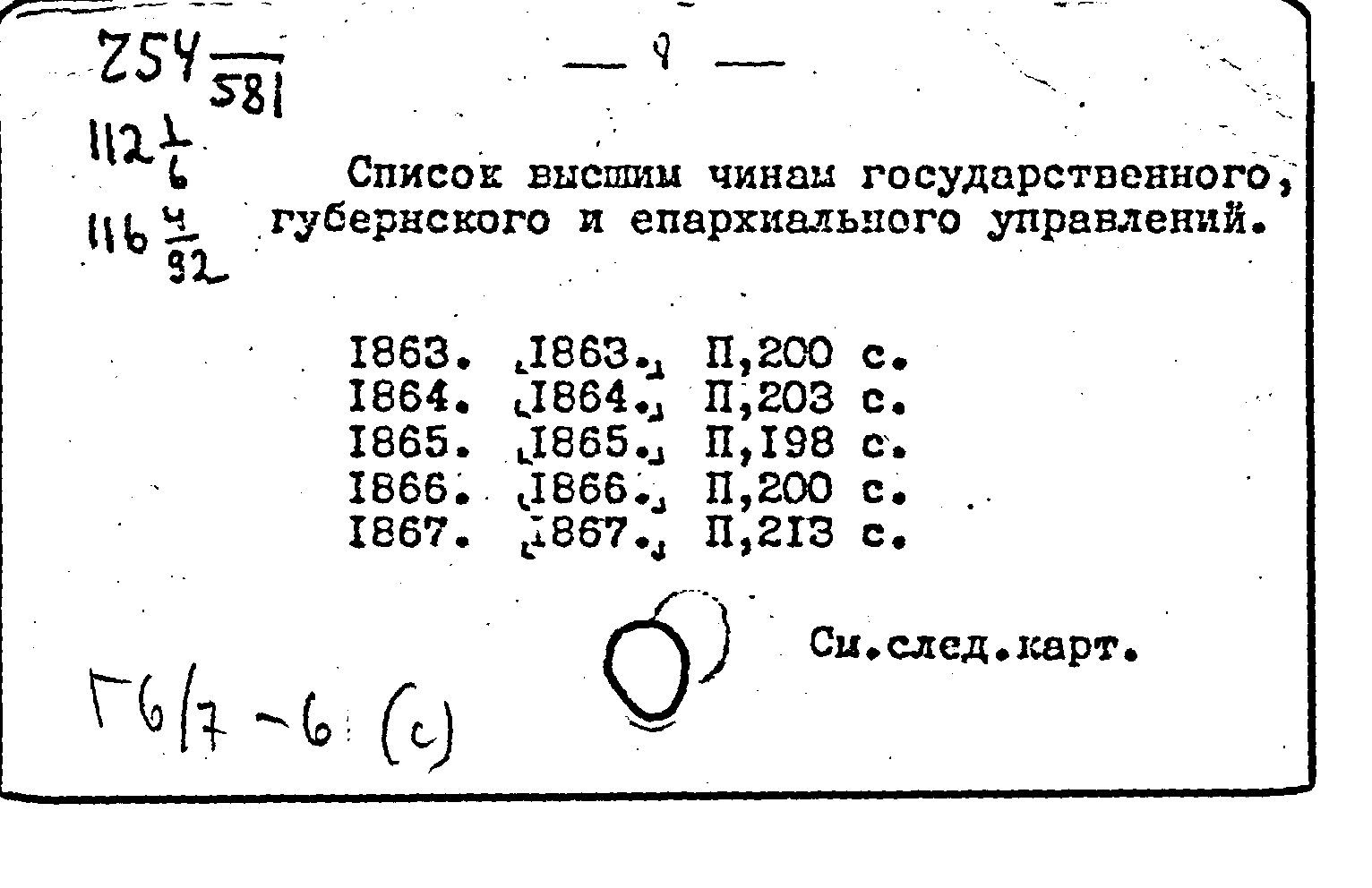 Список высшим чинам государственного, губернского и епархиального управлений. 1867
