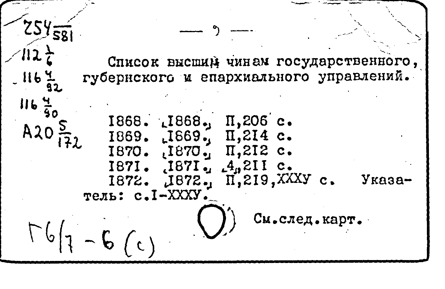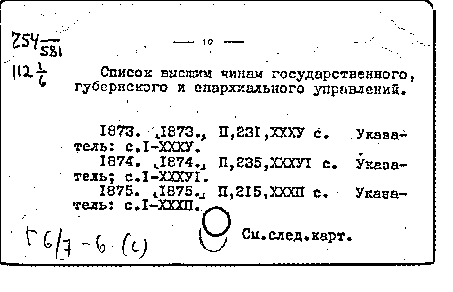 Список высшим чинам государственного, губернского и епархиального управлений. 1873