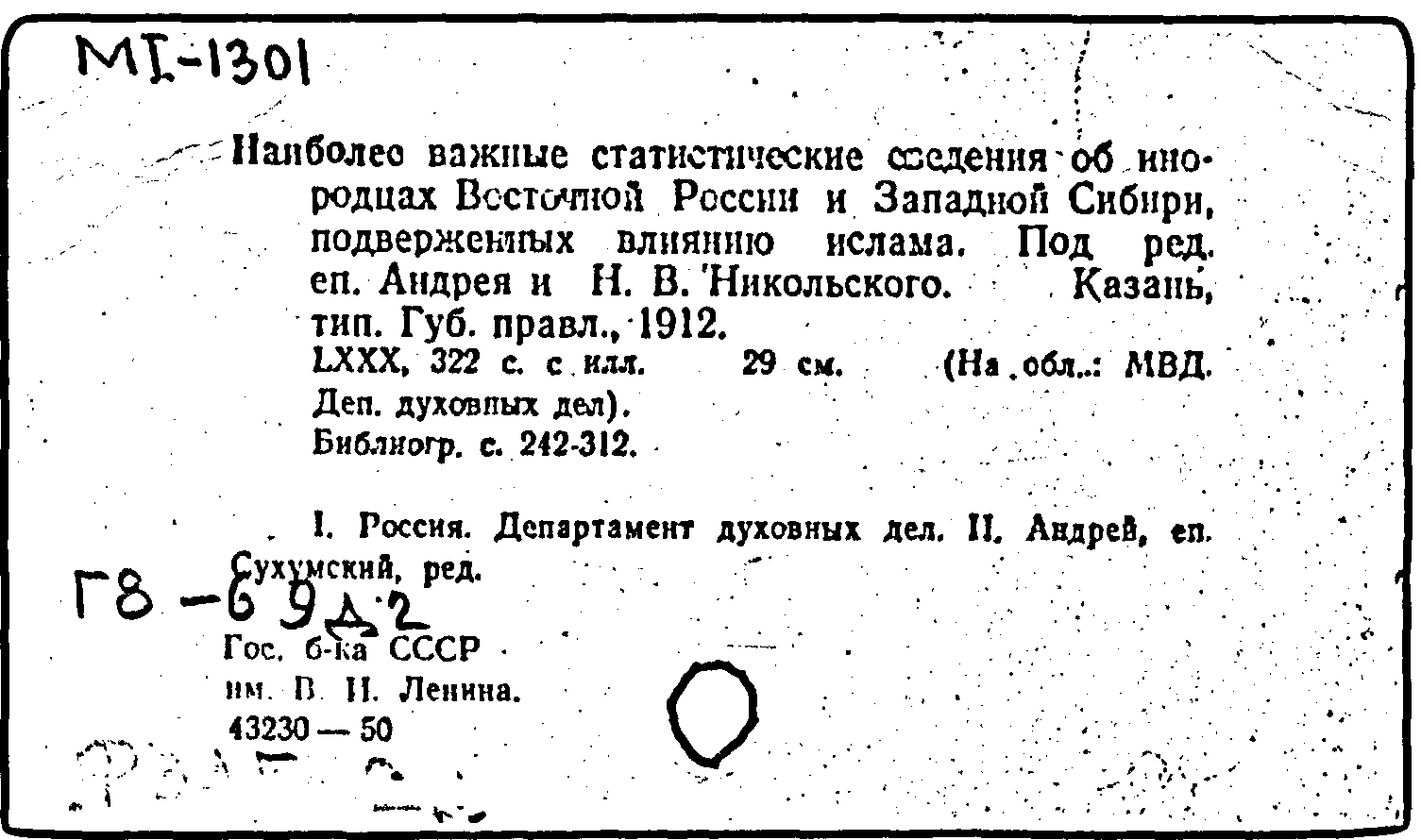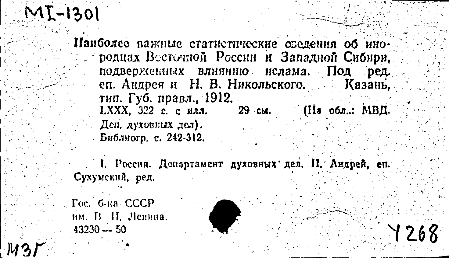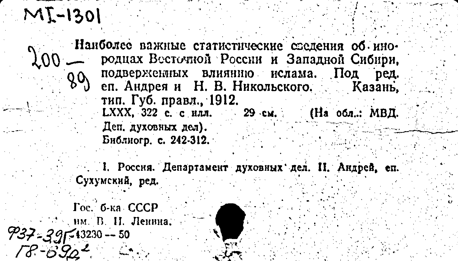 Книга: Наиболее важные статистические сведения об инородцах Восточной России и Западной Сибири, подверженных влиянию ислама