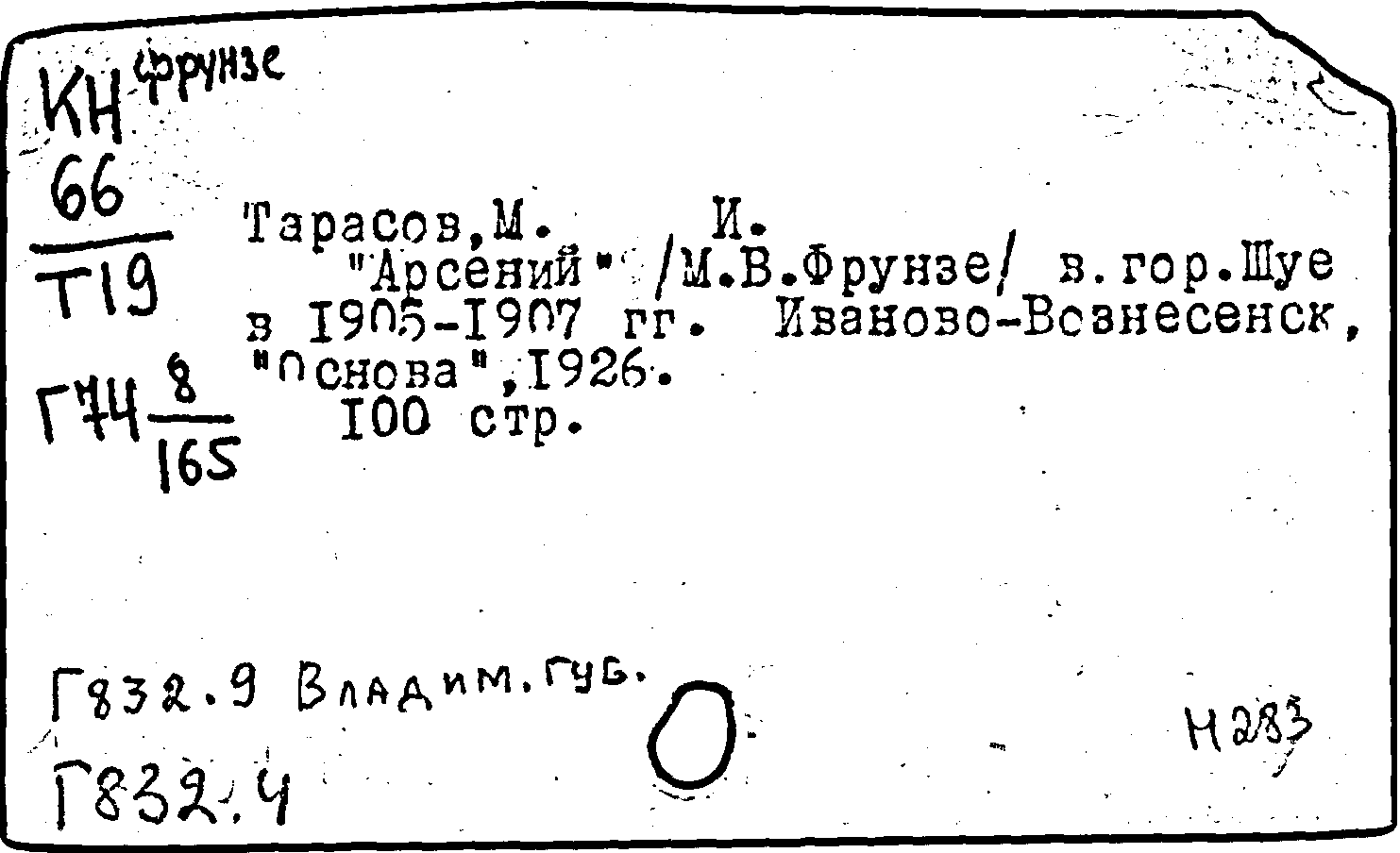 Фонд: КХ, Шифр: КН 66 Фрунзе/Т19, Инв.№: 0319056