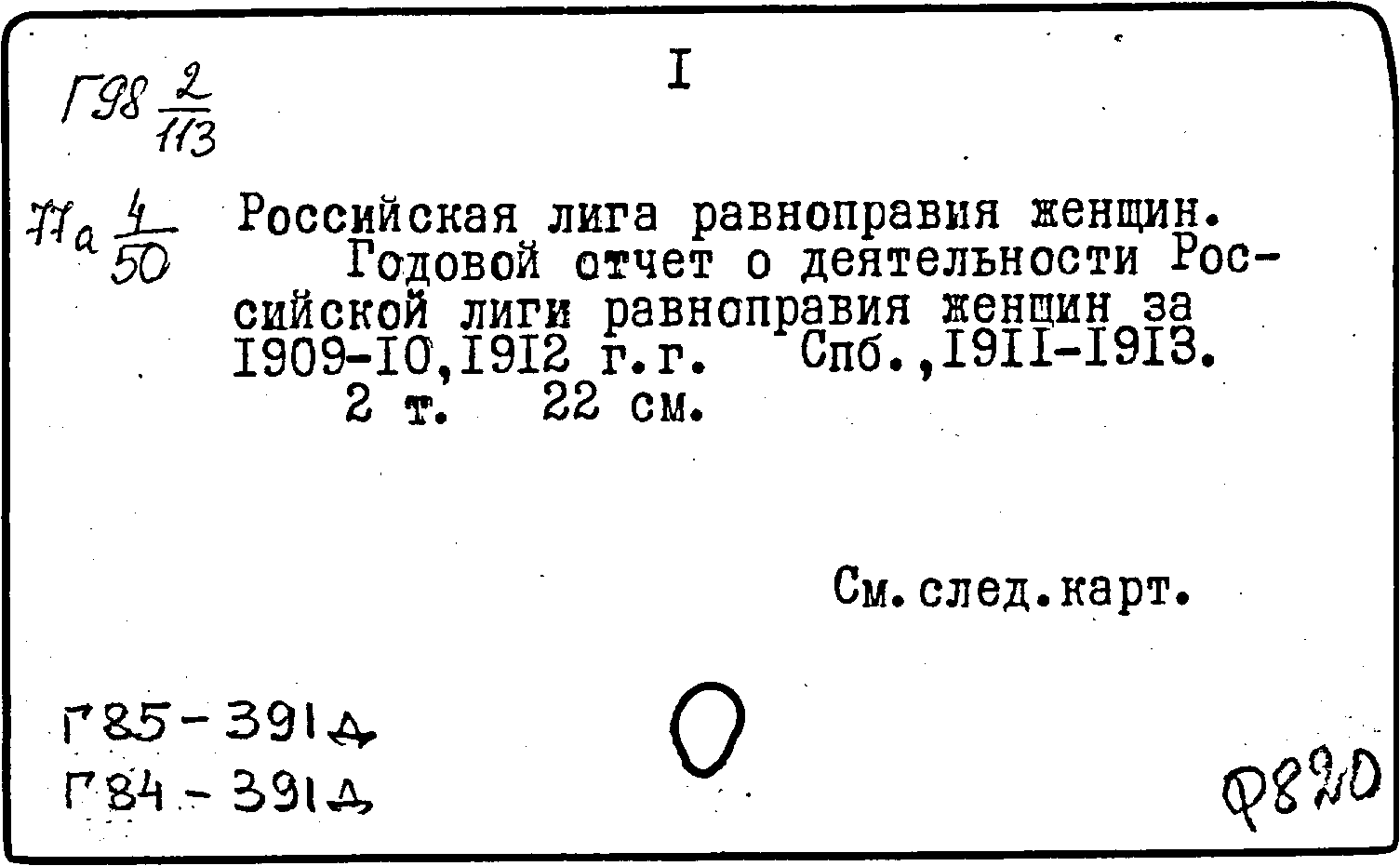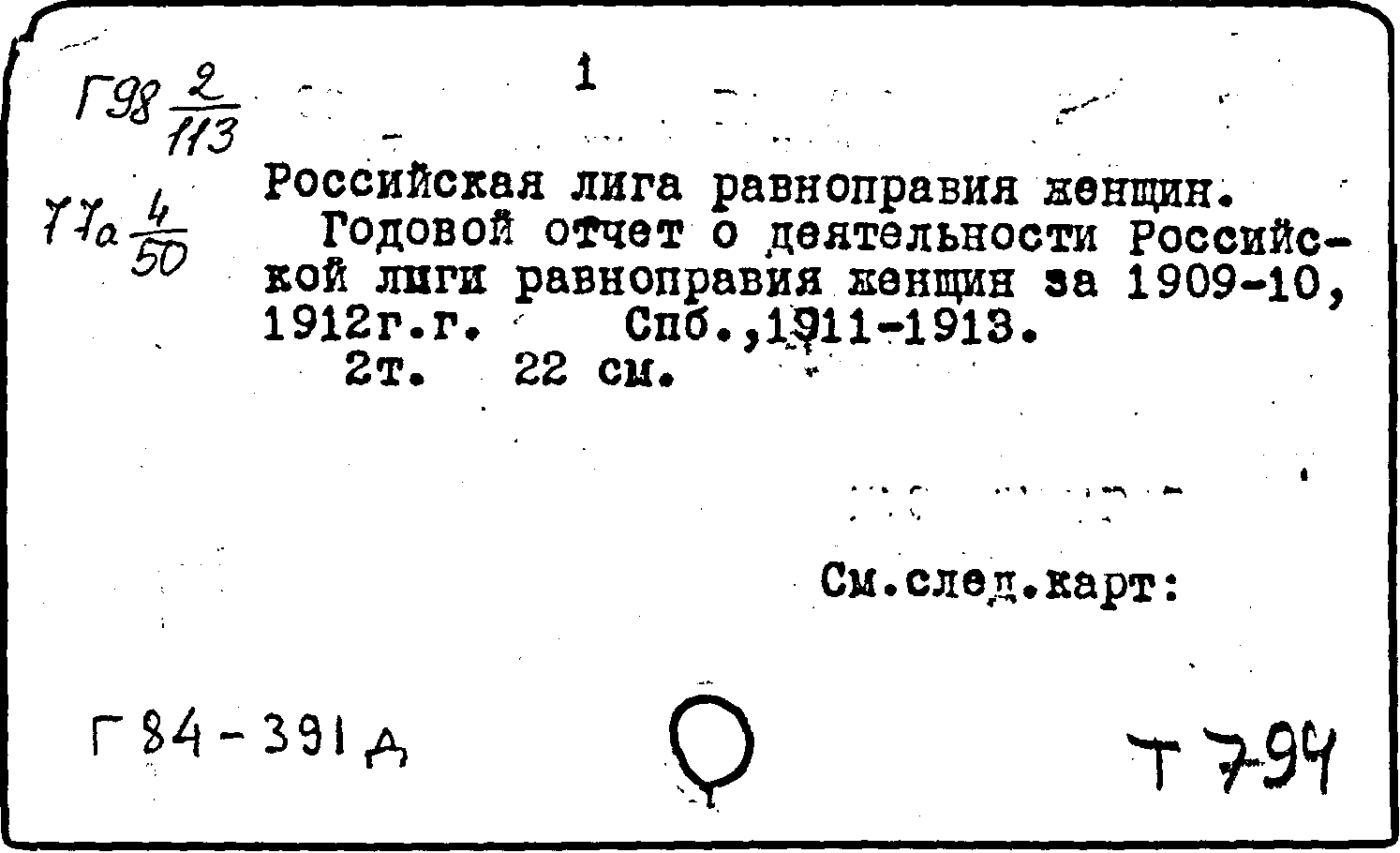 Годовой отчет о деятельности Российской лиги равноправия женщин за 1909-1910, 1912 гг.