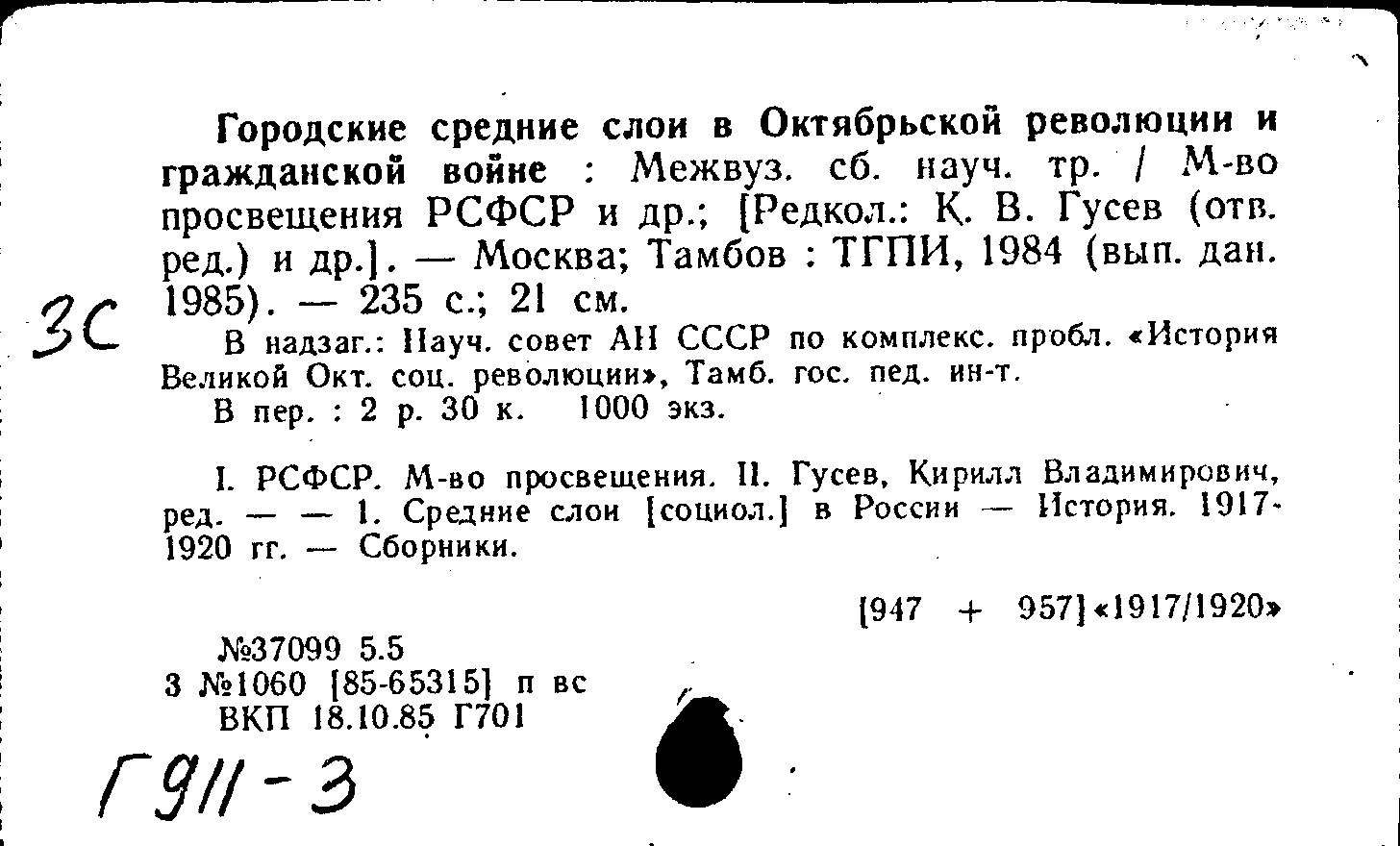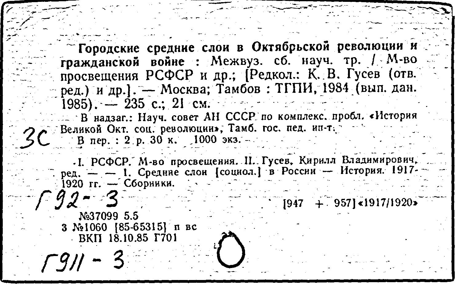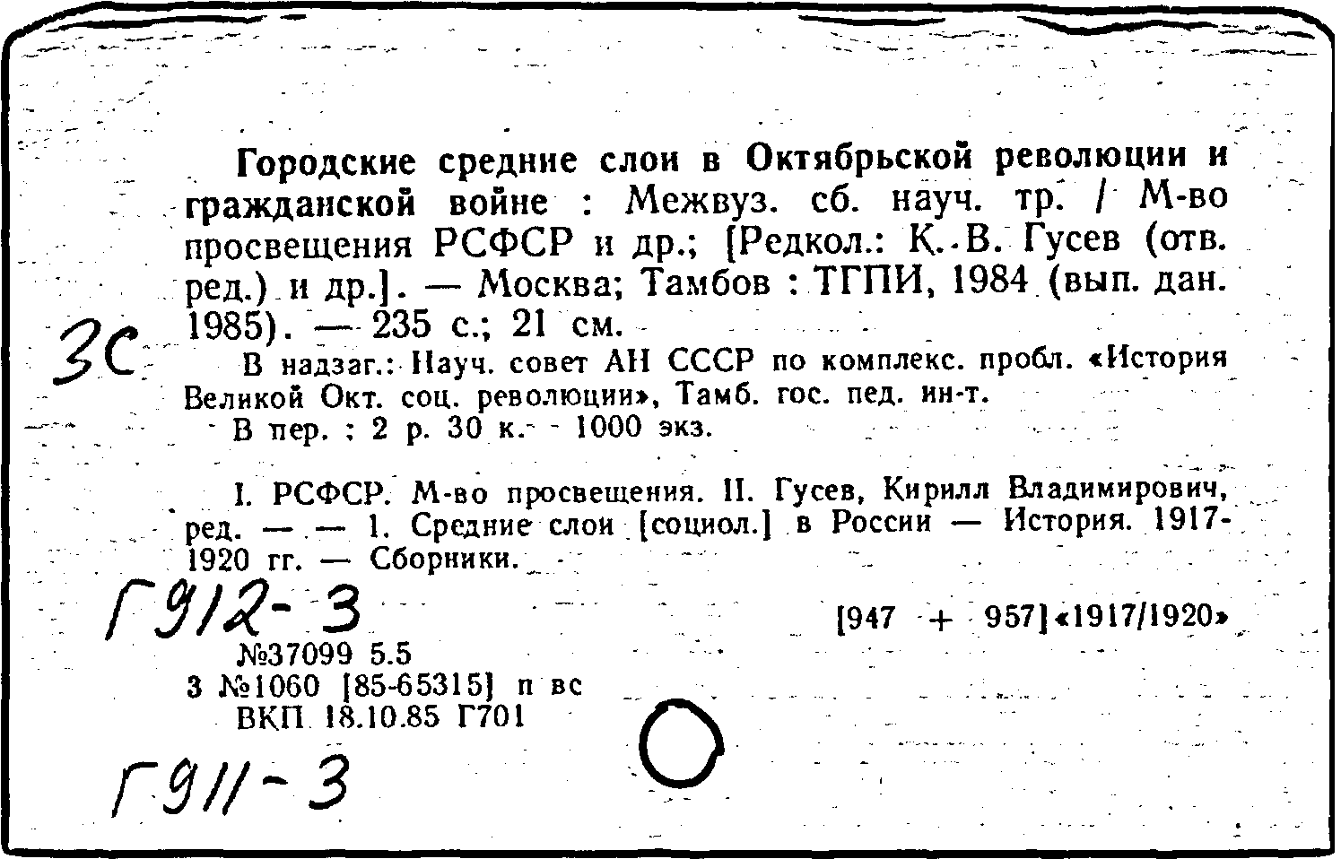Городские средние слои в Октябрьской революции и Гражданской войне: межвузовский сборник научных трудов