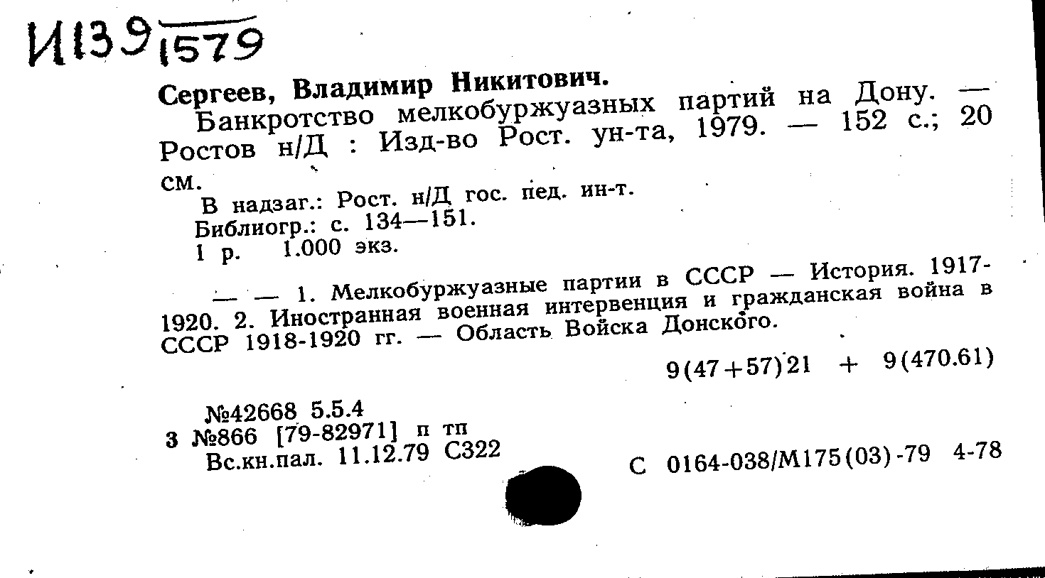 Фонд: КХ, Шифр: И 139 /1579, Инв.№: 0331458