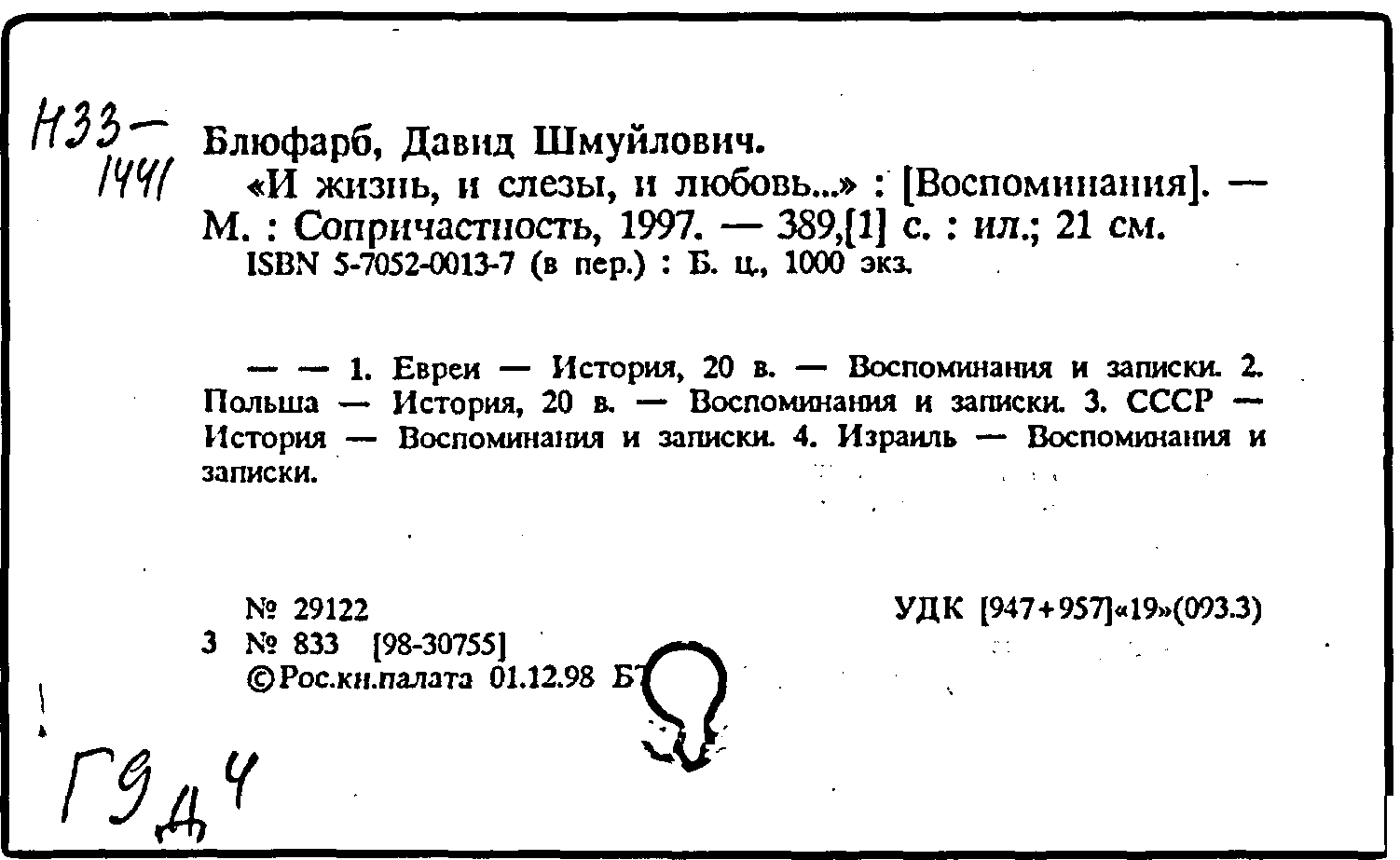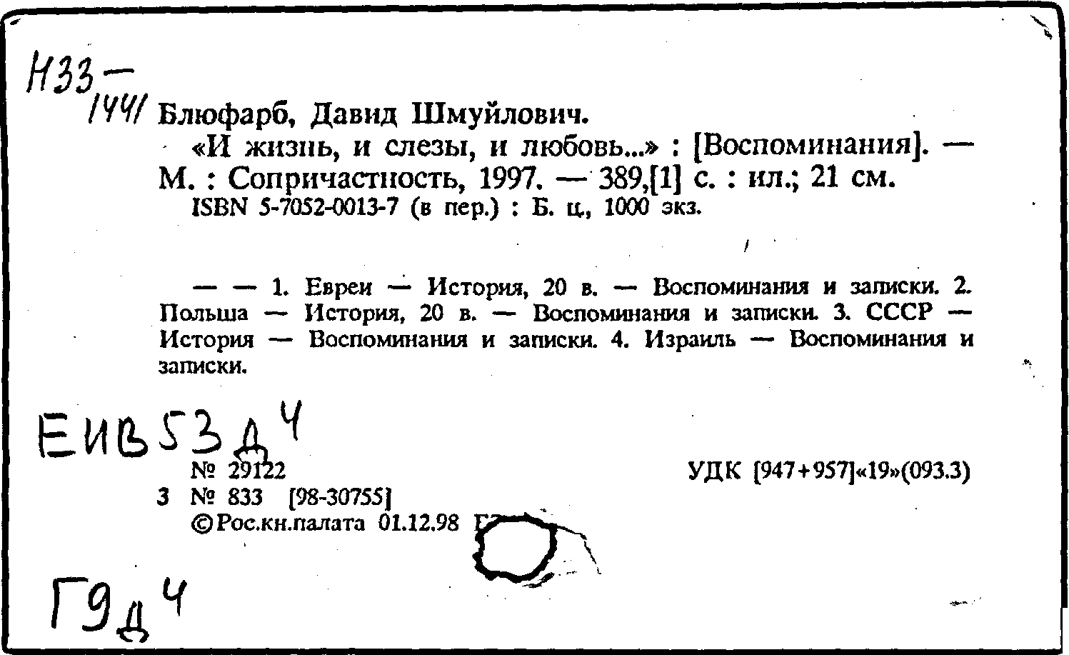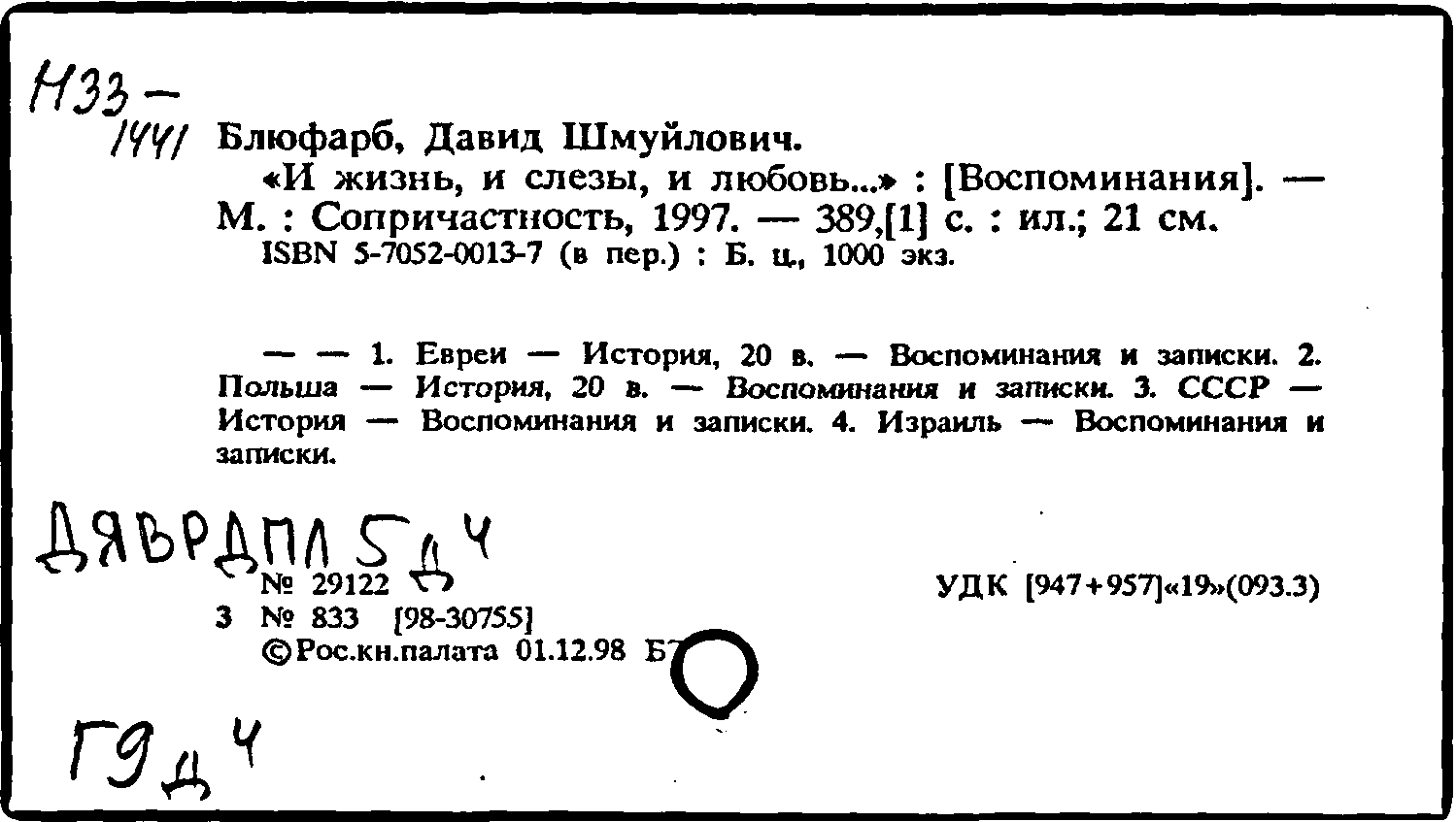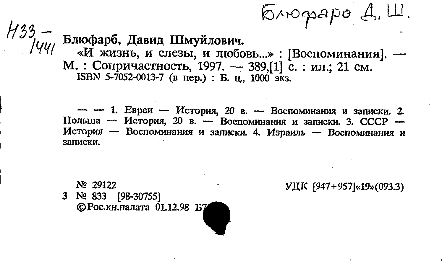 Биографии отдельных государственных, общественных и политических деятелей \ Блюфарб, Давид Шмуйлович (р.1921 г.) (1)