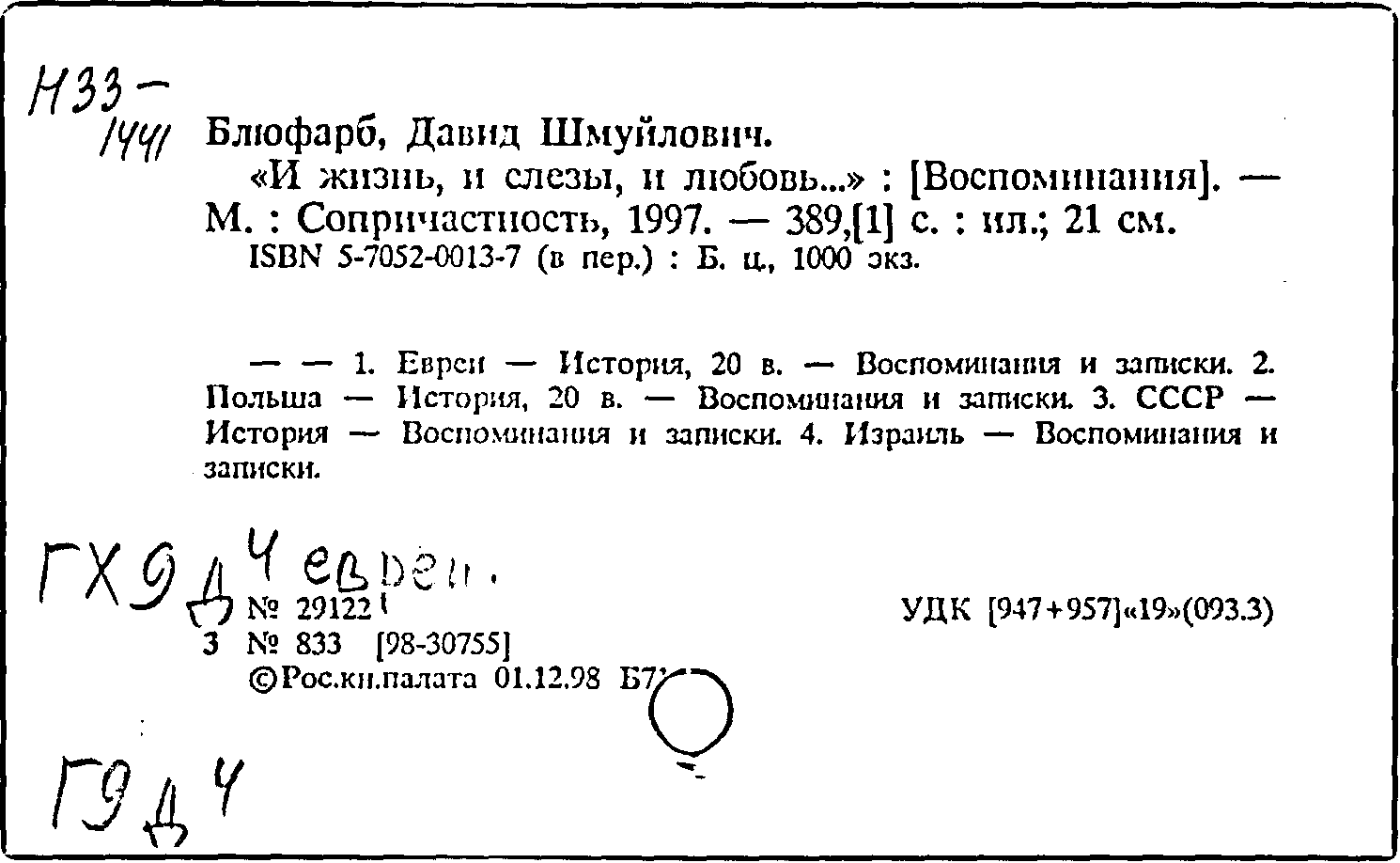 Фонд: КХ, Шифр: Н 33 /1441, Инв.№: 0332646