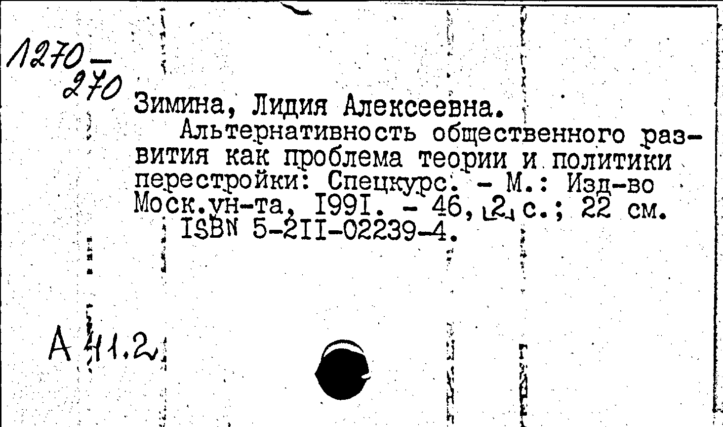 Альтернативность общественного развития как проблема теории и политики перестройки